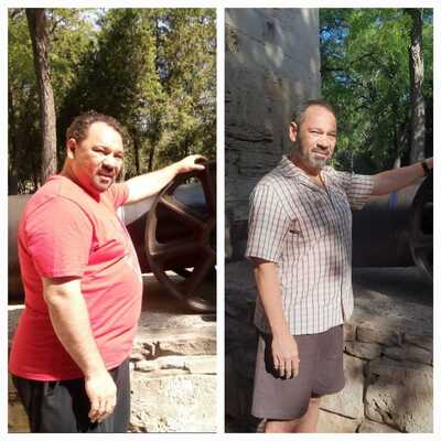 Возможно, вам покажется, что кроме бейджика на шее и штанов не поменялось ничего, ОДНАКО! Между фотографиями 19.9 кг разницы!