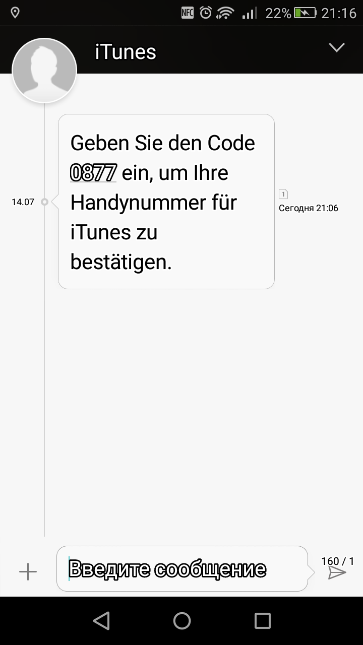 Задайте код 0877, чтобы подтвердить ваш телефонный номер для айтюнс.