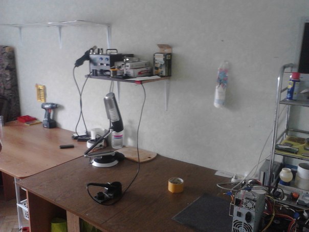 К сожалению, из-за отсутствия денег и мастерской я в дальнейшем больше ушел в программирование и вообще в виртуальные технологии, и за паяльник вновь взялся только в 18 лет в качестве мастера по ремонту всякой техники, когда понял что человеку, зачем-то нужна еда, а та покупается за деньги. (Фото несколько лет спустя) мастерская в той-же комнате.