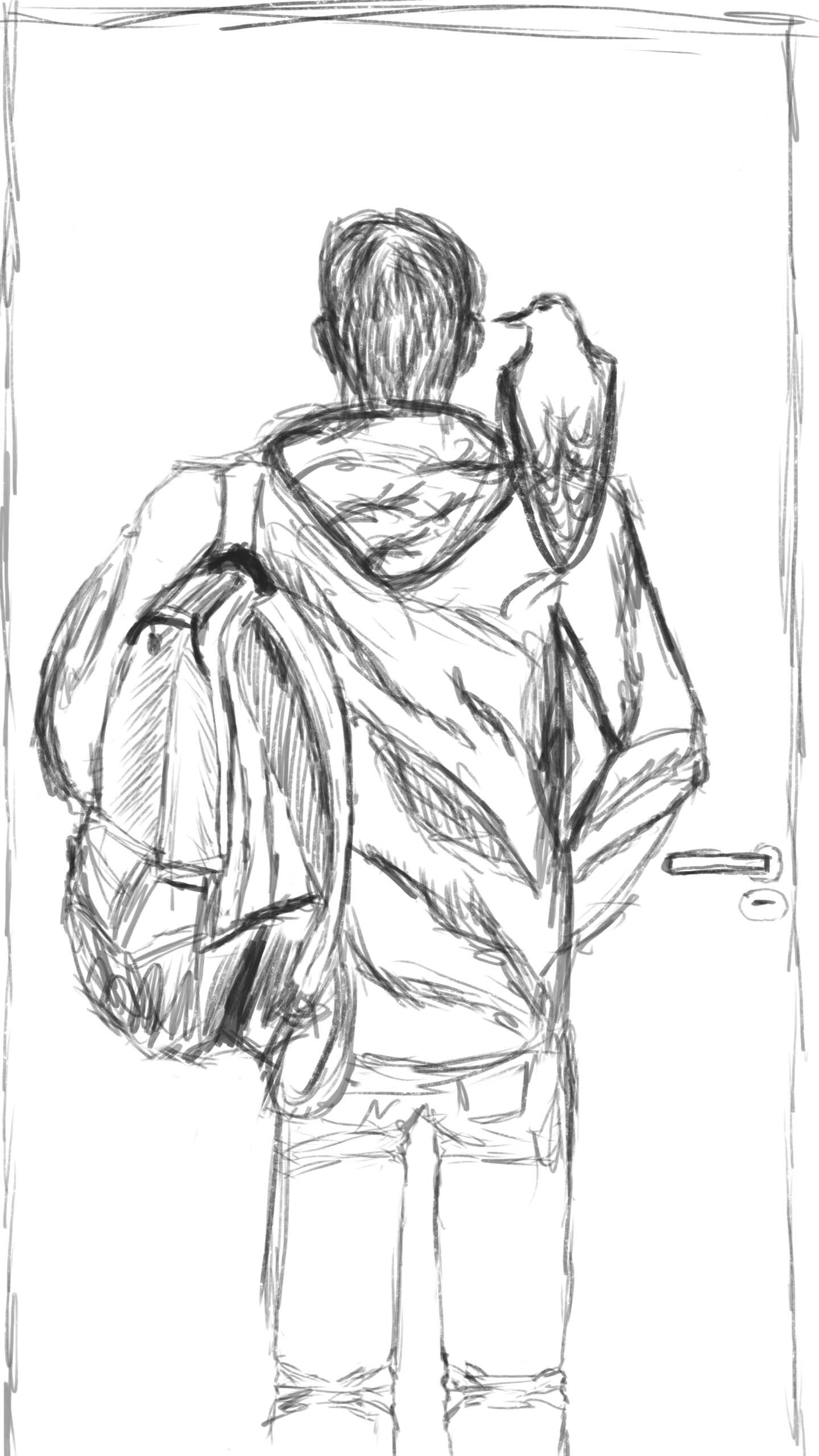 Иногда у меня случается рисовательный зуд, и тогда я могу потратить час, два, три, чтобы намалевать что-нибудь, визуализирующее мою историю. Сегодня попробовал нарисовать кадр, отражающий самое начало переработанной истории.