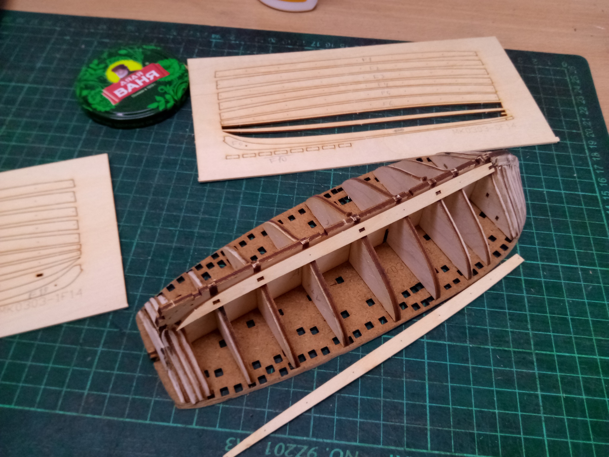 После установки шпангоутов начал укладку черновой обшивки корпуса