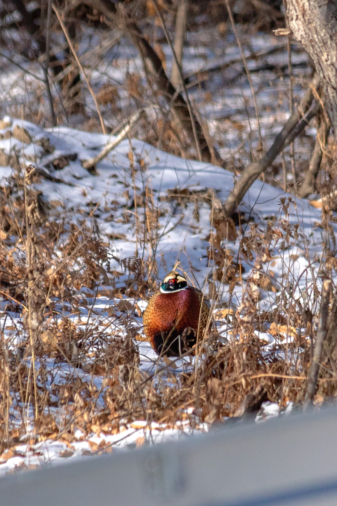 Прилегающий к участку лес также был задействован, его я утыкала кукурузными початками прям напротив окна, для привлечения фазанов. Мою кормушечную реди-мейд инсталляцию в окно тоже видно и теперь у меня свой собственный канал "в мире животных". Это как за рыбками в аквариуме наблюдать, только за птичками.