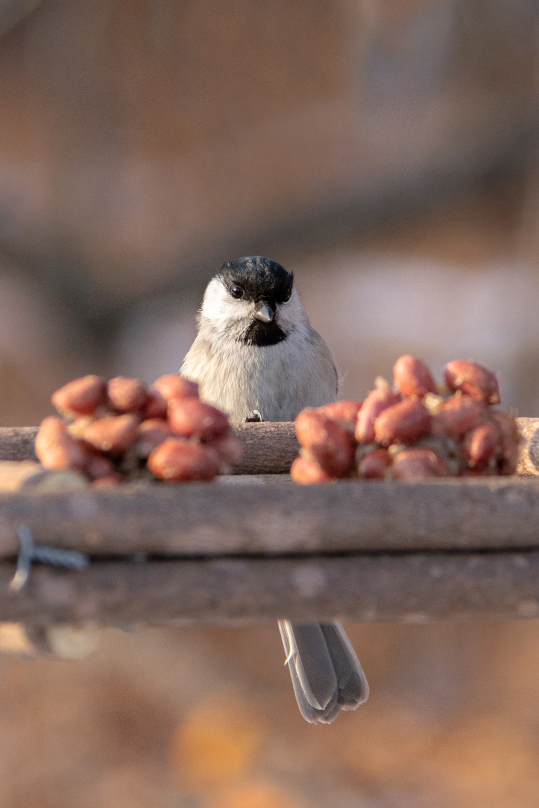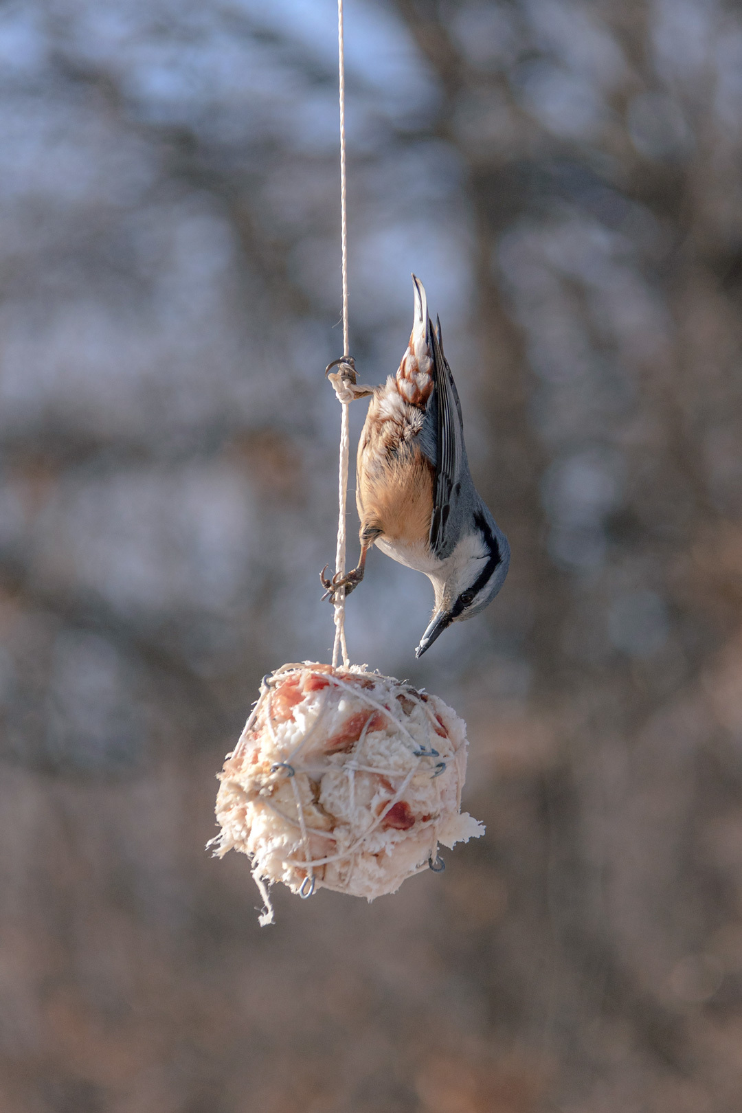 По моим наблюдениям, основными посетителями кормушечного дерева стали гаички (вроде как черноголовые), поползни и восточные синицы. Залетают также сойки, большой пёстрый дятел и седоголовый дятел, ну и на этом пока всё. Есть ещё воробьи, но им у соседей в мукомольне привычней. Ещё перепелятник заглядывает, но он за другим.
