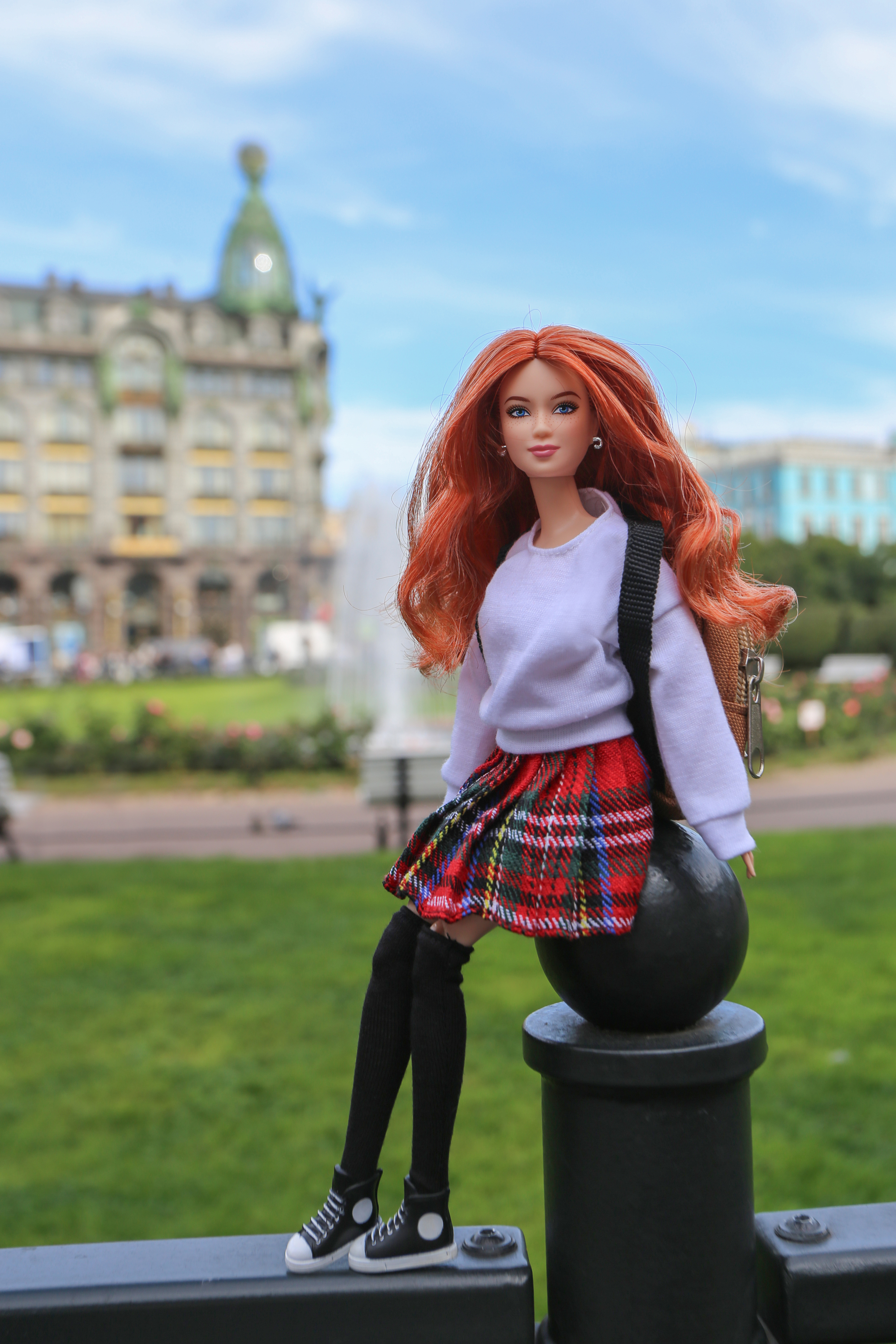 Знакомьтесь, это Ева, и по лору она студентка. Не так давно я опубликовала свою книгу, где главной героиней является рыжая девушка. Когда я увидела эту куклу, назад пути не было: слишком запала в душу, а ещё мне хотелось подержать в руках мини-воплощение моей фантазии. Название книги не скажу) Несмотря на то, что она попала в две номинации премии "Электронная буква 2025", я очень боюсь пикабушной критики)) Поэтому вот вам центр Санкт-Петербурга, такой, каким его видит Ева со своего 26-сантиметрового роста: