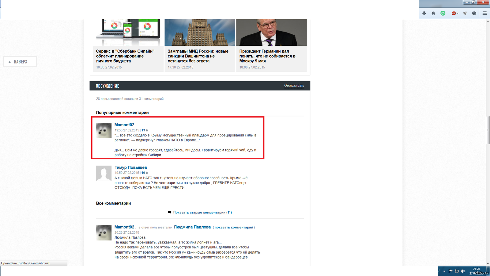 Порадовал коммент в риа новости