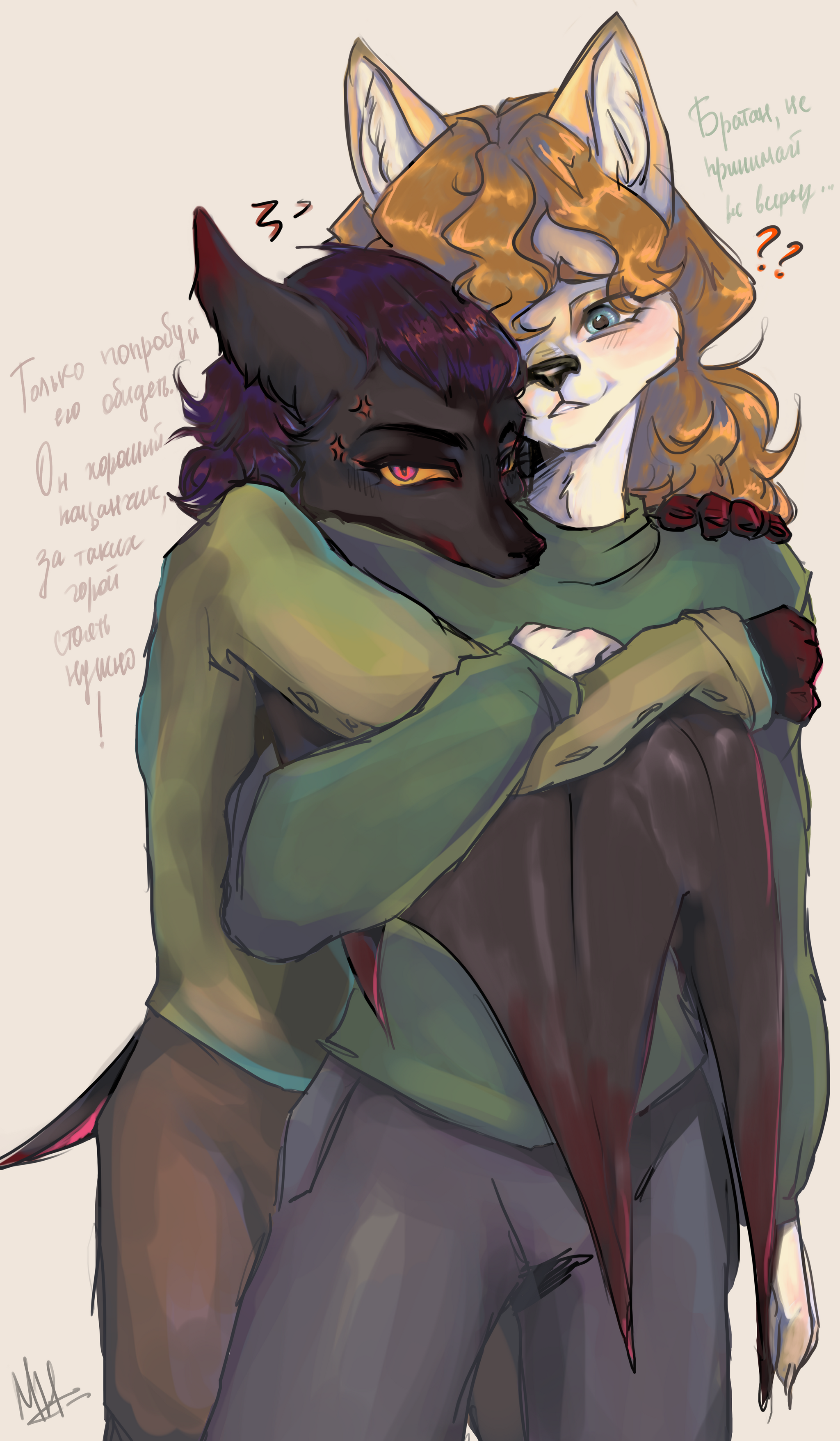 Очень хотелось сделать отношения между Беллом и Рокки достаточно близкие дружеские отношения, где Рокки ни даст своего друга в обиду и при случае, когда Белла будут задевать или оскорблять, начинать спокойно защищать его. Хоть Белл и не чувствует злобу или какую-то обиду, все же с Рокки ему спокойнее.
