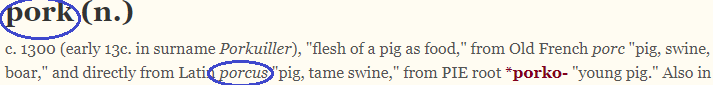 herzog5 Этимология Pork Происхождение 2 года назад https://www.etymonline.com/word/pork https://lexicography.online/etymology/vasmer/п/поросенок Свинья Свинина Ещё 0