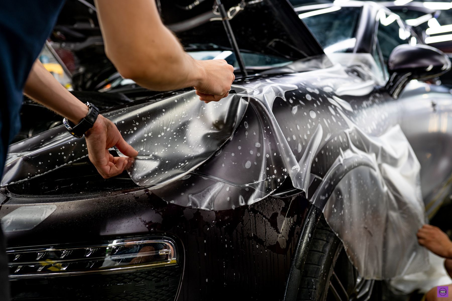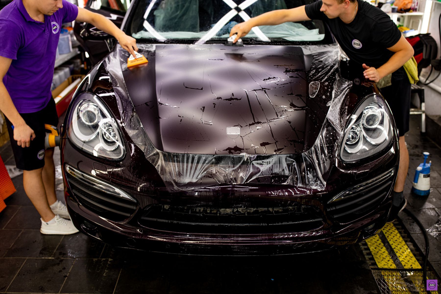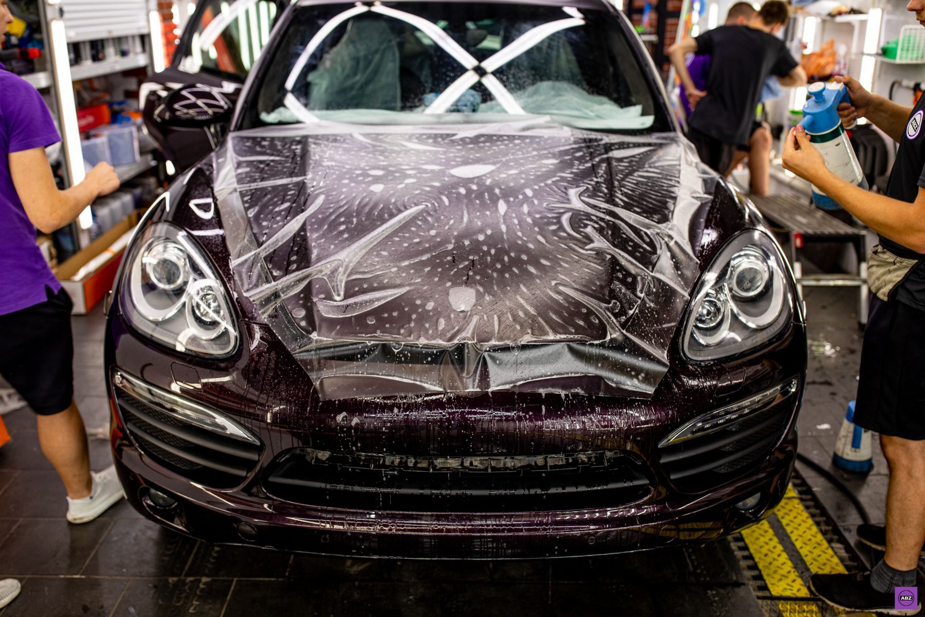 Владелец решил вернуть ему статусность. Для начала мы аккуратно «раздели» машину — сняли весь винил. Под ним оказался кузов цвета «Спелая черешня» — насыщенный, глубокий, прям как вечернее небо в бокале вина. Но просто оставить так было бы скучно, поэтому мы пошли дальше.
