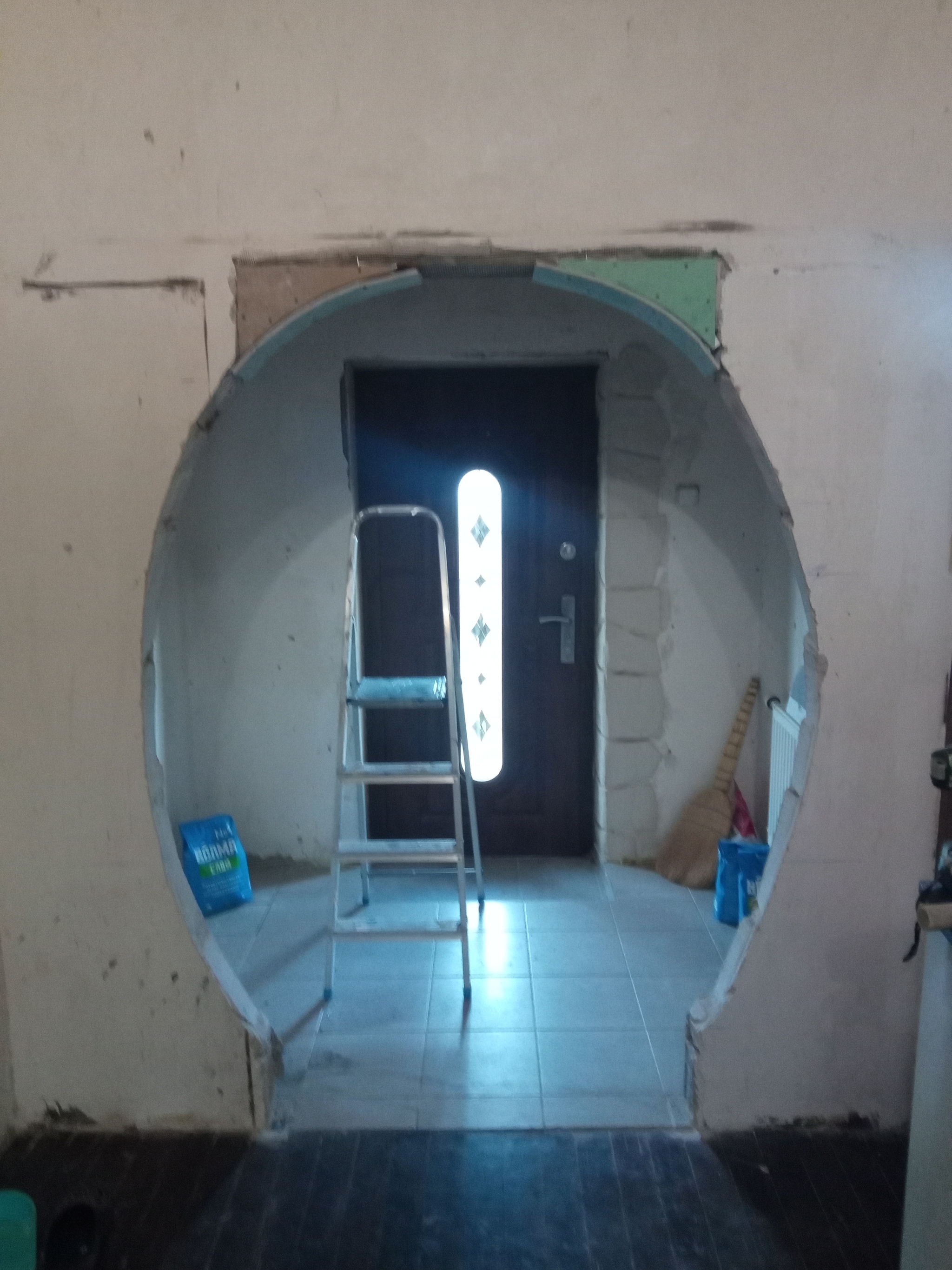 В общем на праздниках делать было нечего и решил я немного развалить дом. На входе у меня тамбур, когда-то с дверью. Но в процессе эксплуатации выяснилось, что дверь не используется и была снята. Остался такой проём.
