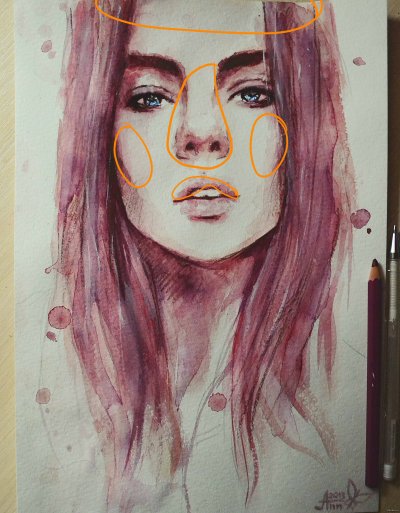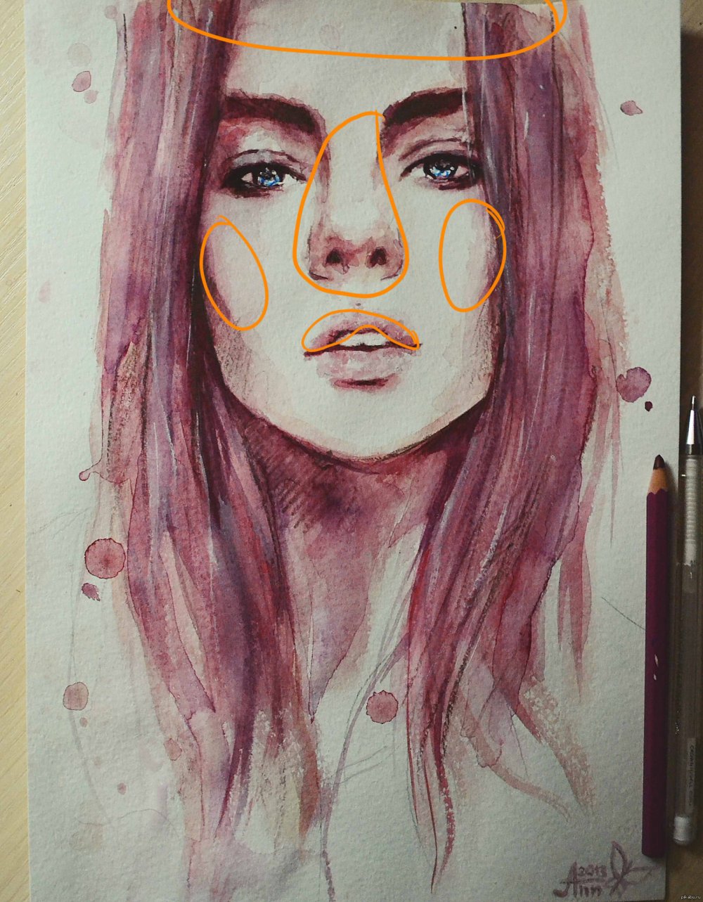 Получился средненько. Та как вы рисовали по фото, то вам легче было, чем если вы рисовали из головы. Но ошибки всё равно допущены. У вас симметрия лица поехала: брови на разной вышине, и переносица широкая. Гамма хорошо подобрана, но советую брать желтоватые оттенки для волос, а не белые для бликов. Потом, волосы надо было начинать пониже, ибо сейчас у неё слишком высокий лоб. Остальные проблемные места я выделила на картинки.