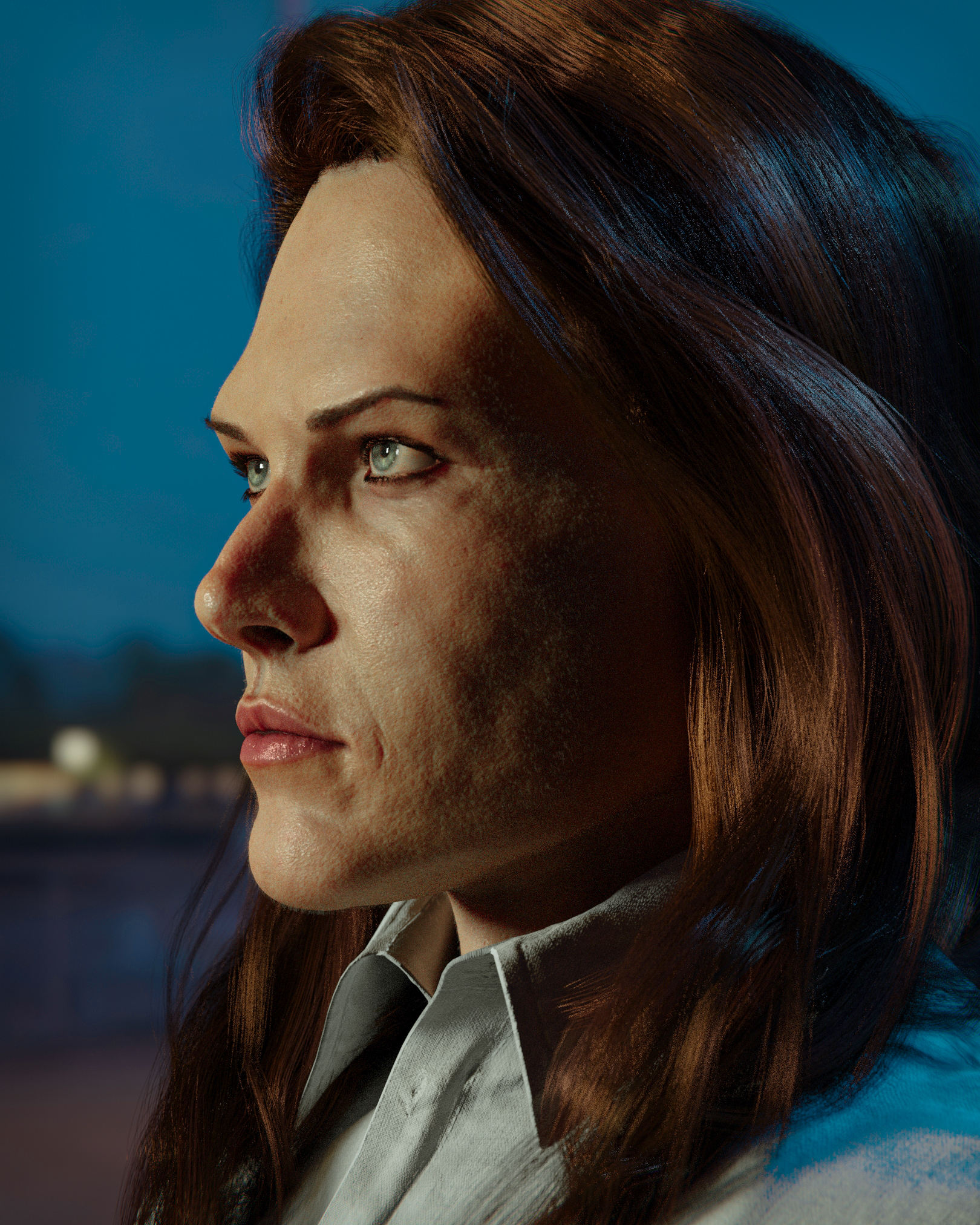 В этот раз решил попробовать смоделировать одежду и использовать бесшовные детали кожи. Чуть проапгрейдил скилл укладки волос (хотя впереди еще долгий путь) и сделал небольшую анимацию.