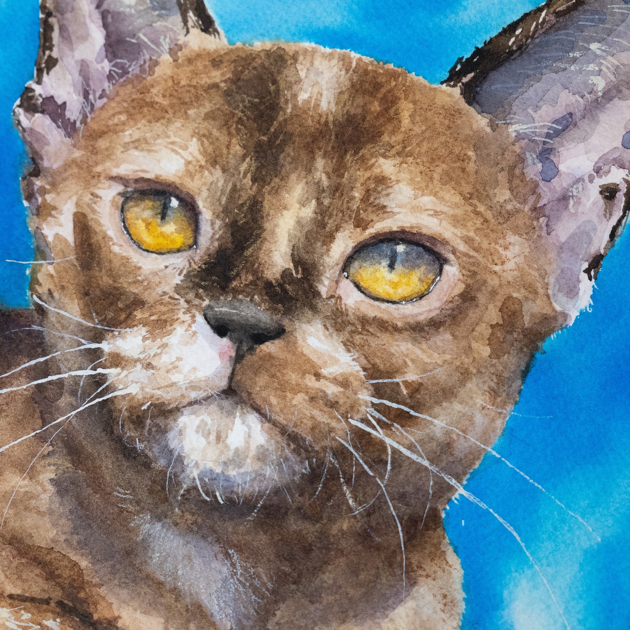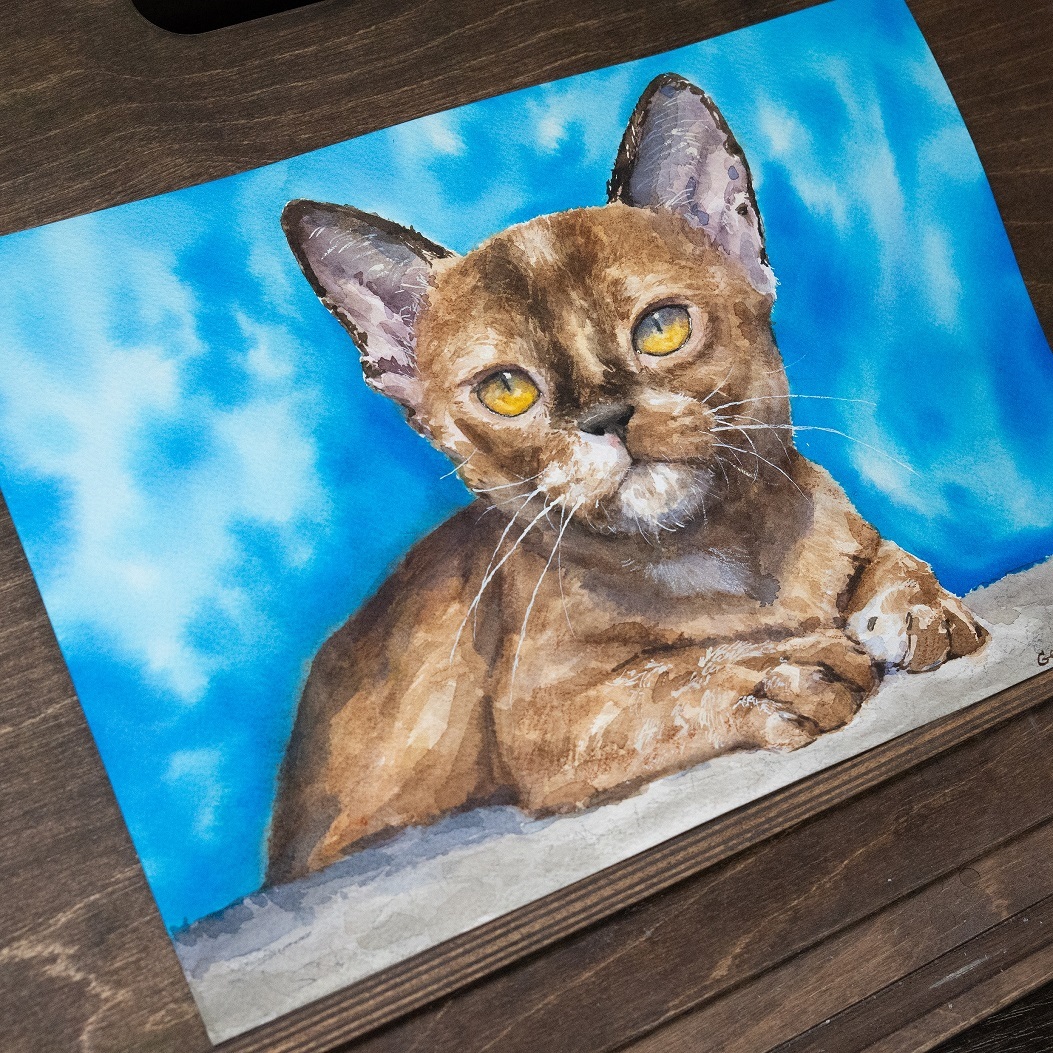 Портрет акварелью кошки Гели для моего друга :)