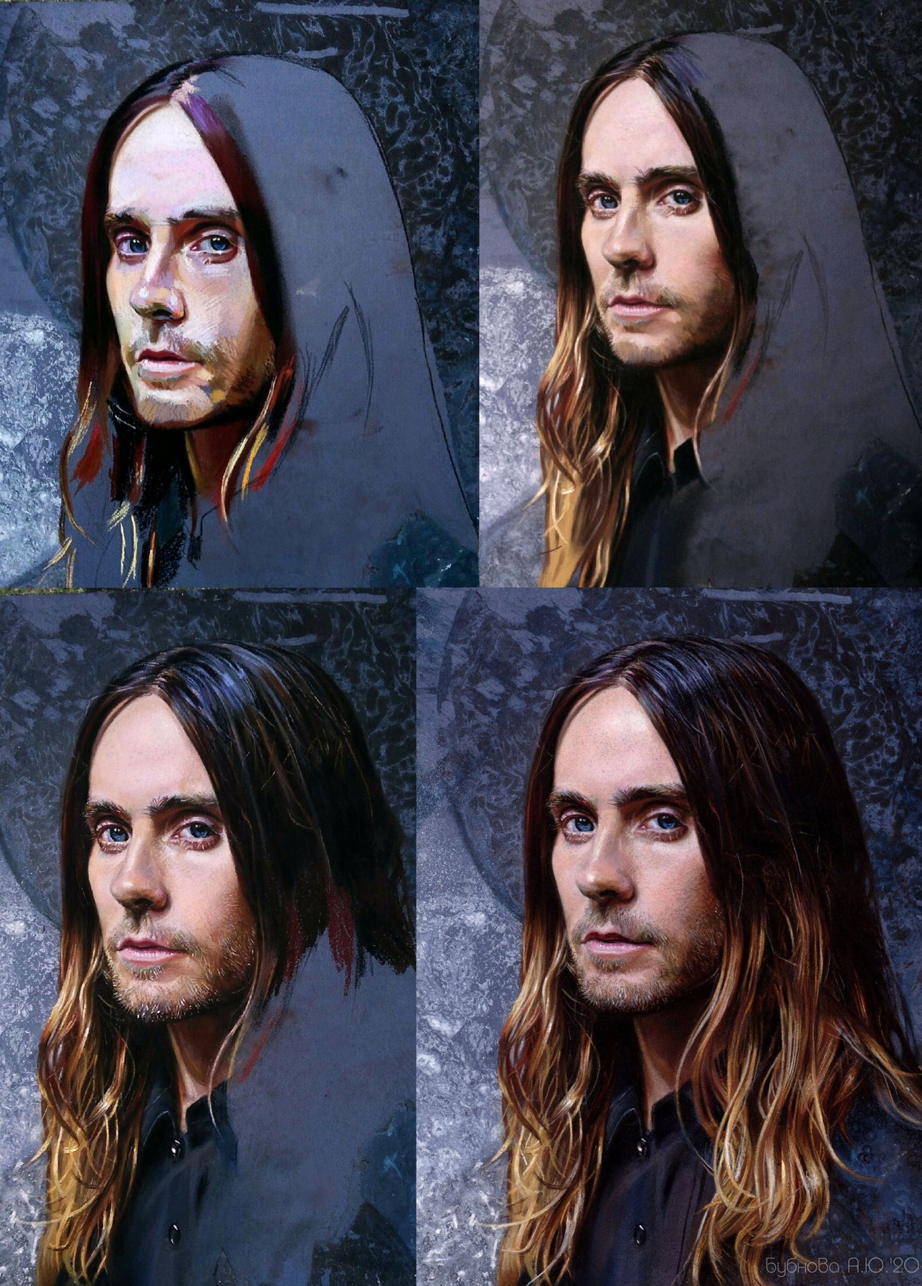 Тон. бумага А3, сух.пастель, пастельные карандаши, фон - масло
