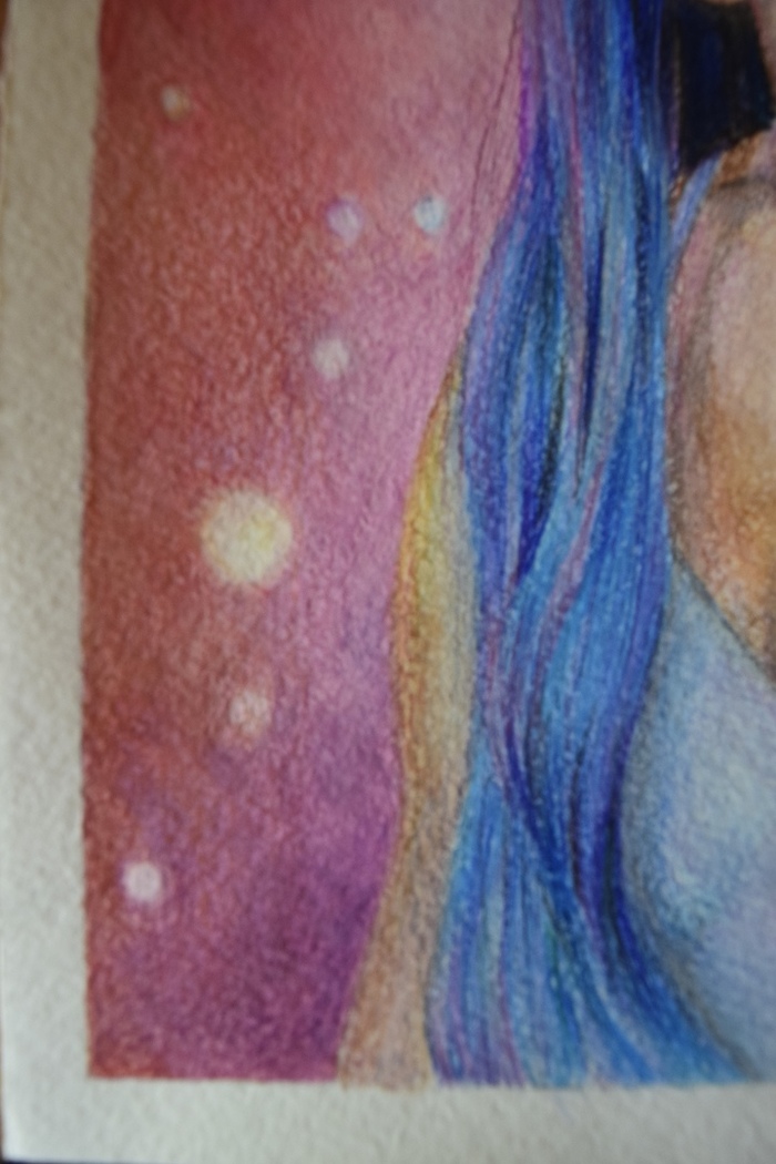 На акварельной бумаге не очень хорошо выходит. Это дело вкуса, но мне, как любителю гиперреализма не нравится. Лучше буду на обычной бумаге и меньше мочить, потому что таким образом любая бумага кукожится.