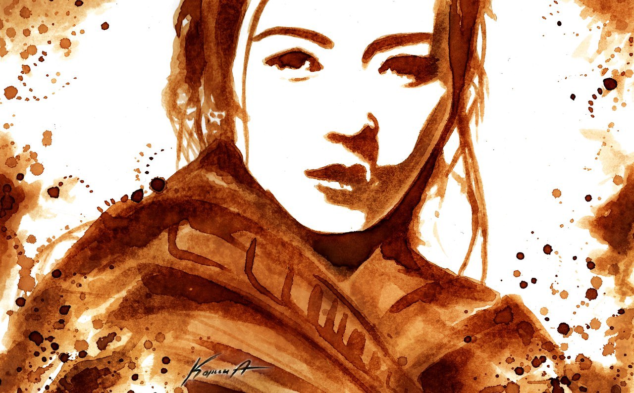 Портрет, в качестве краски использовала настоящий КОФЕ. 2017.