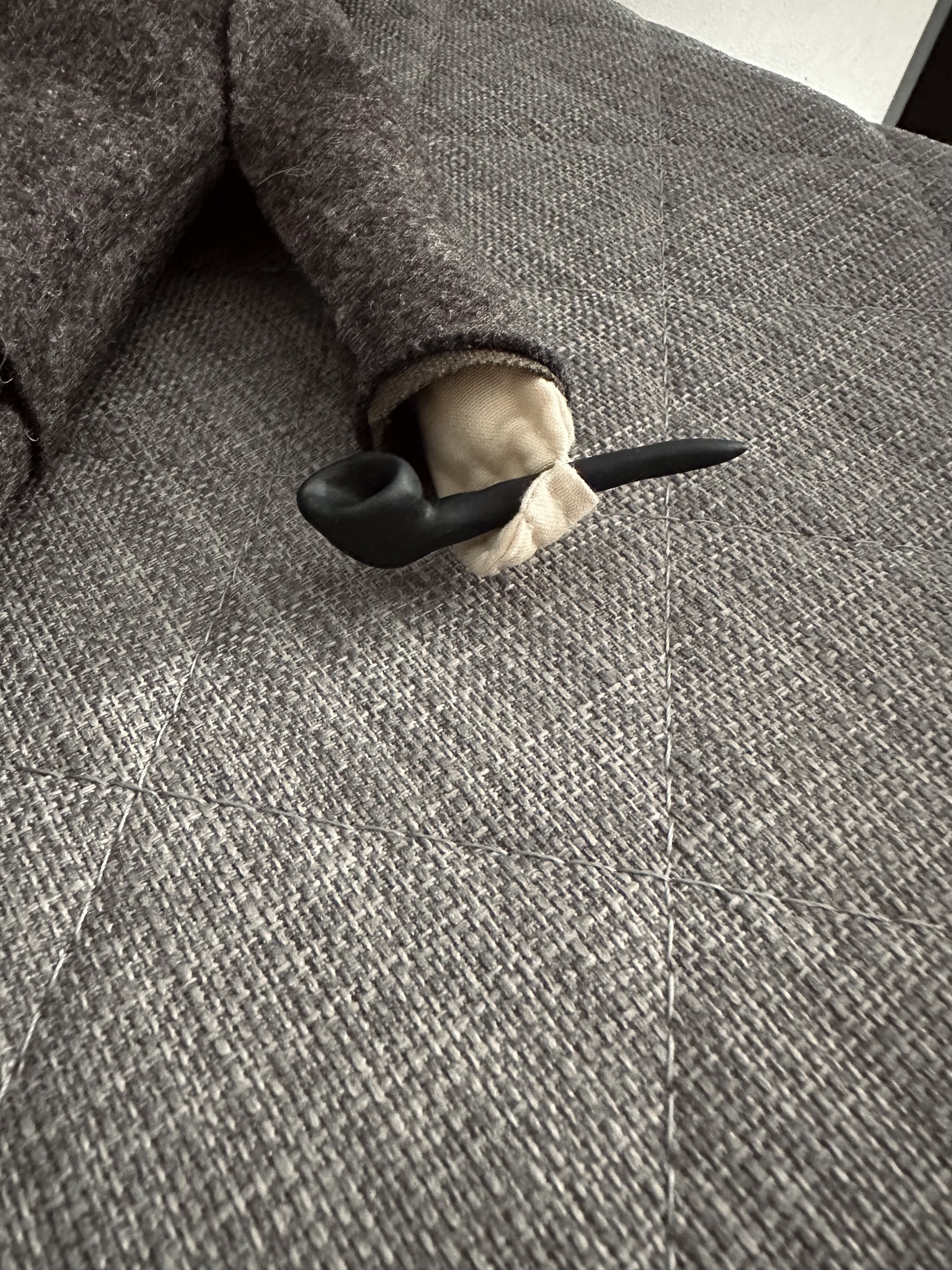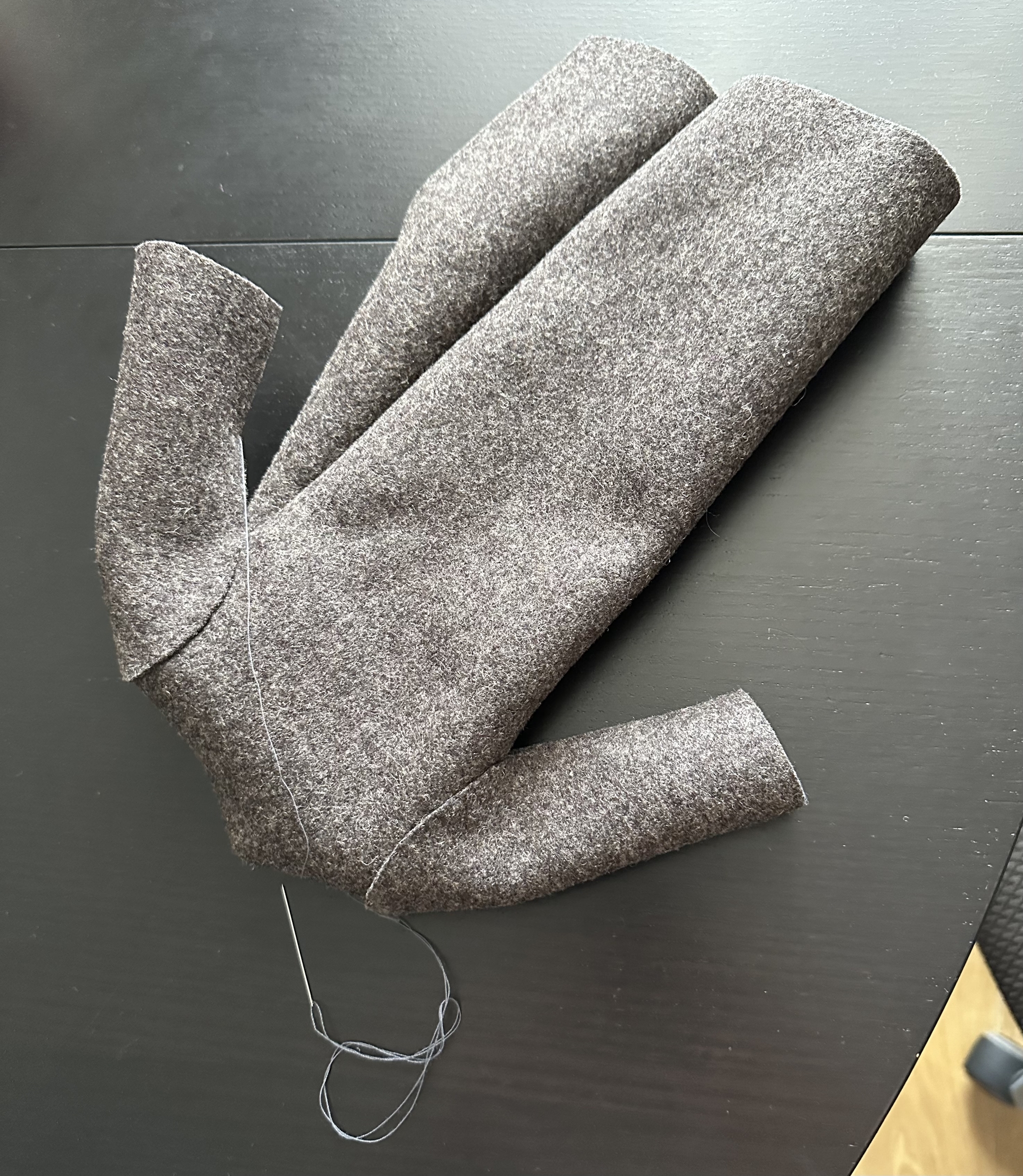 Сшивала детали вручную, очень плотный материал. Швы отпарила утюгом, поэтому не вгибаются, как на этом фото: