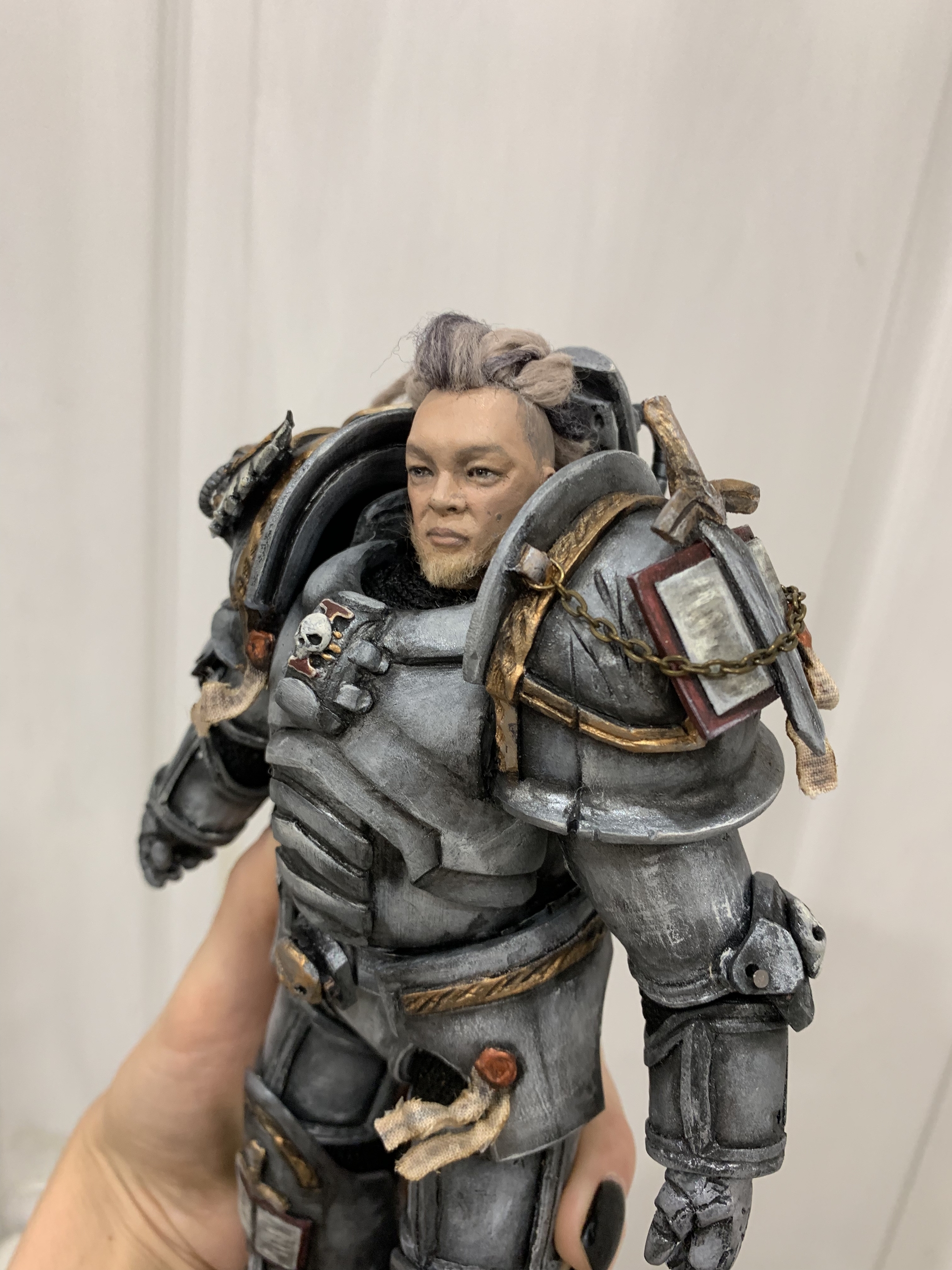 Это был мой «Эверест», задачка со звездочкой 😅. Первая в жизни портретная кукла человека, первый раз я создавала нечто масштабное, техническое и совершенно чуждое мне. Я не была знакома с миром и мне пришлось изучить очень много информации и особенностей, в тайне от получателя конечно же. Это полностью подвижная кукла, все детали слеплены и окрашены в ручную. Я использовала запекаемую полимерную глину, никаких 3D принтеров, только крафт только хардкор. Несколько раз переделывала детали брони и подгоняла их друг к другу. Голову переделывала три раза. Кукла подарена, но все еще в процессе завершения, но мне кажется завершения не будет никогда, слишком много всяких прикольных штук типа оружия, стенда, накидок и прочего красивого можно добавлять этому рыцарю.