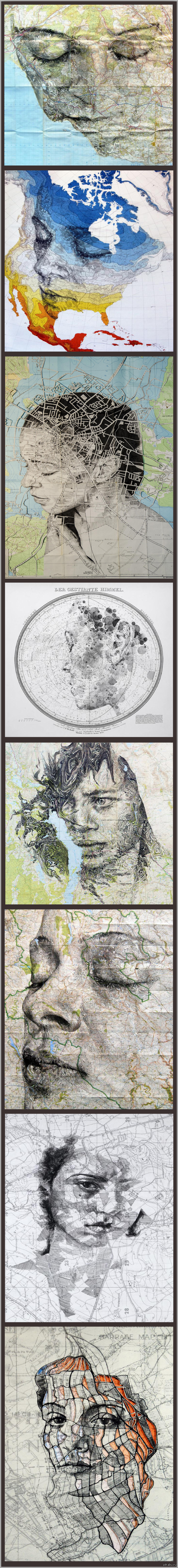 13 Sharpie 11 лет назад Портреты на географических картах Автор: Ed Fairburn Длиннопост Ручка Чернила Искусство Талант