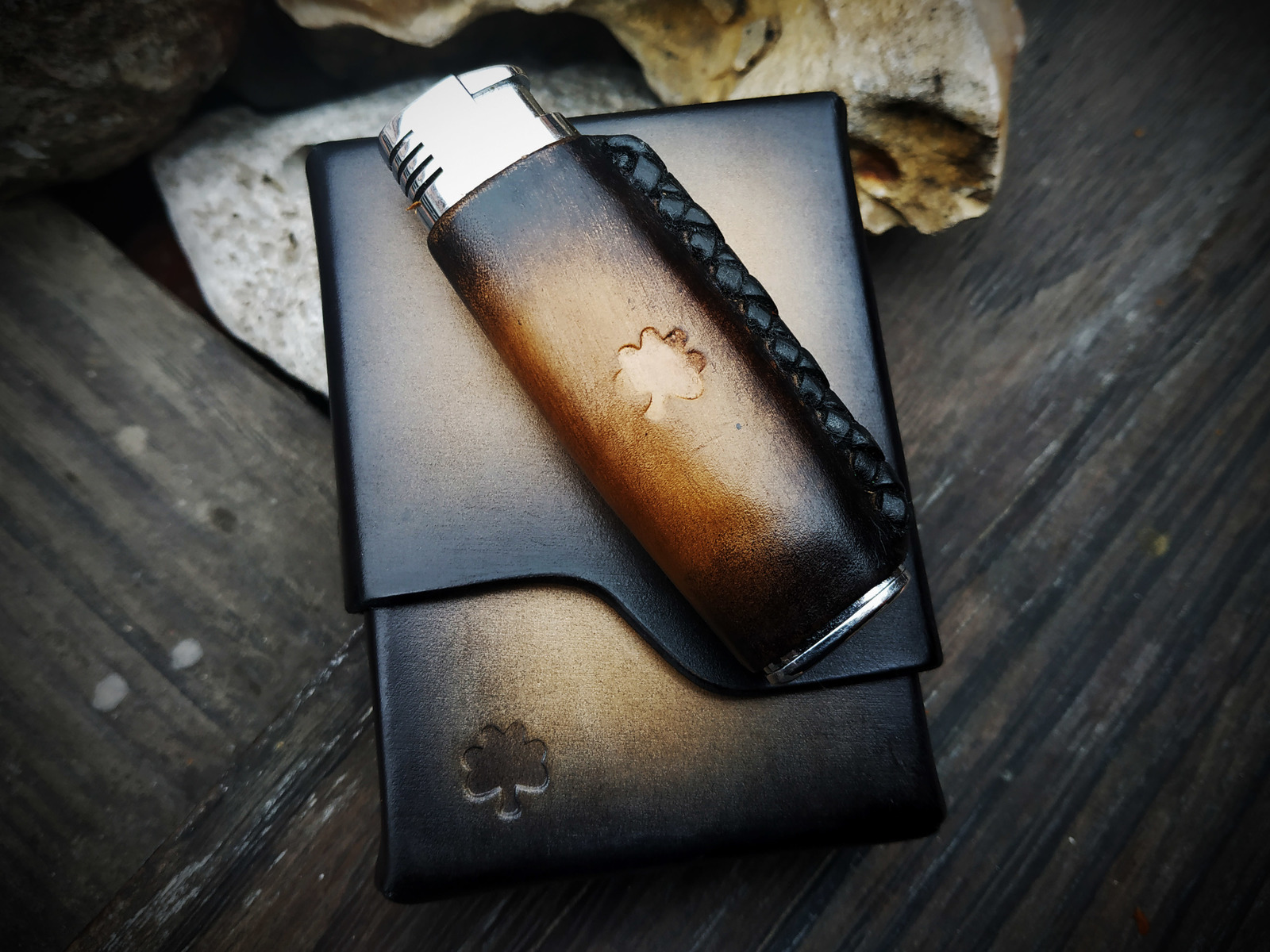 В продолжении тематики «Портсигар из натуральной кожи» решил привнести немного разнообразия в палитре футляров для сигарет и добавить еще один неотъемлемый атрибут для ценителей табачных изделий, а именно – карманную зажигалку в оригинальном чехле из натуральной кожи.