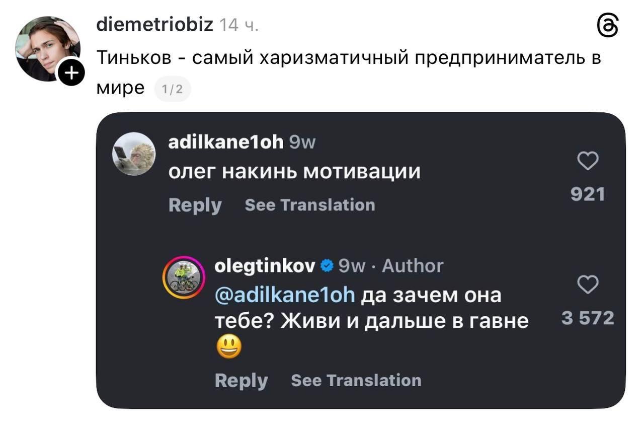 9 terebiata Мемы. Лучшее Порция мотивации от Олега 9 часов назад Телеграм канал 18+ https://t.me/trash_tv404/3514 Юмор Картинка с текстом Скриншот Мотивация Олег Тиньков Threads Telegram (ссылка) 4 1 Ещё 0