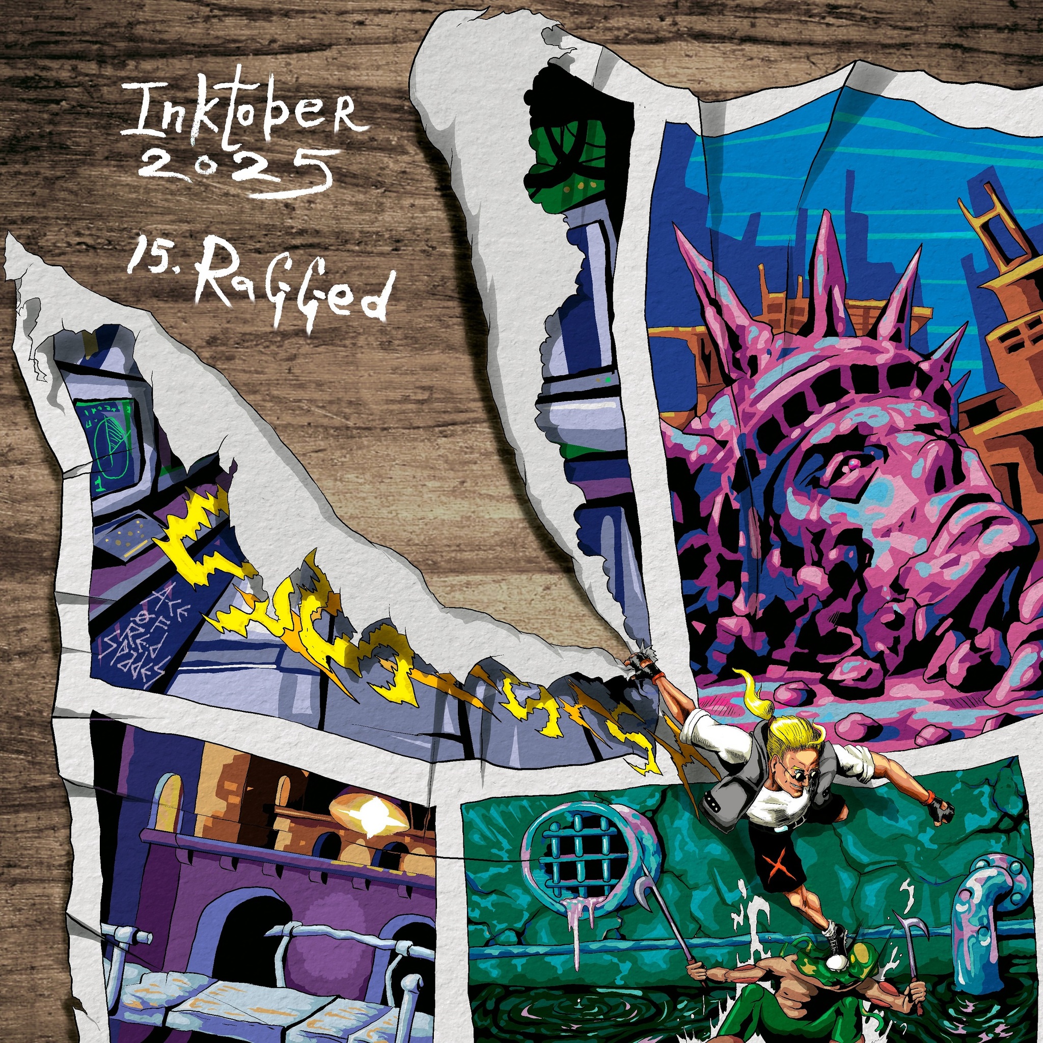 Inktober 2025 день 15 - Рваный. Сегодня фанарт по одной из самых стильных игр детства: Comix Zone