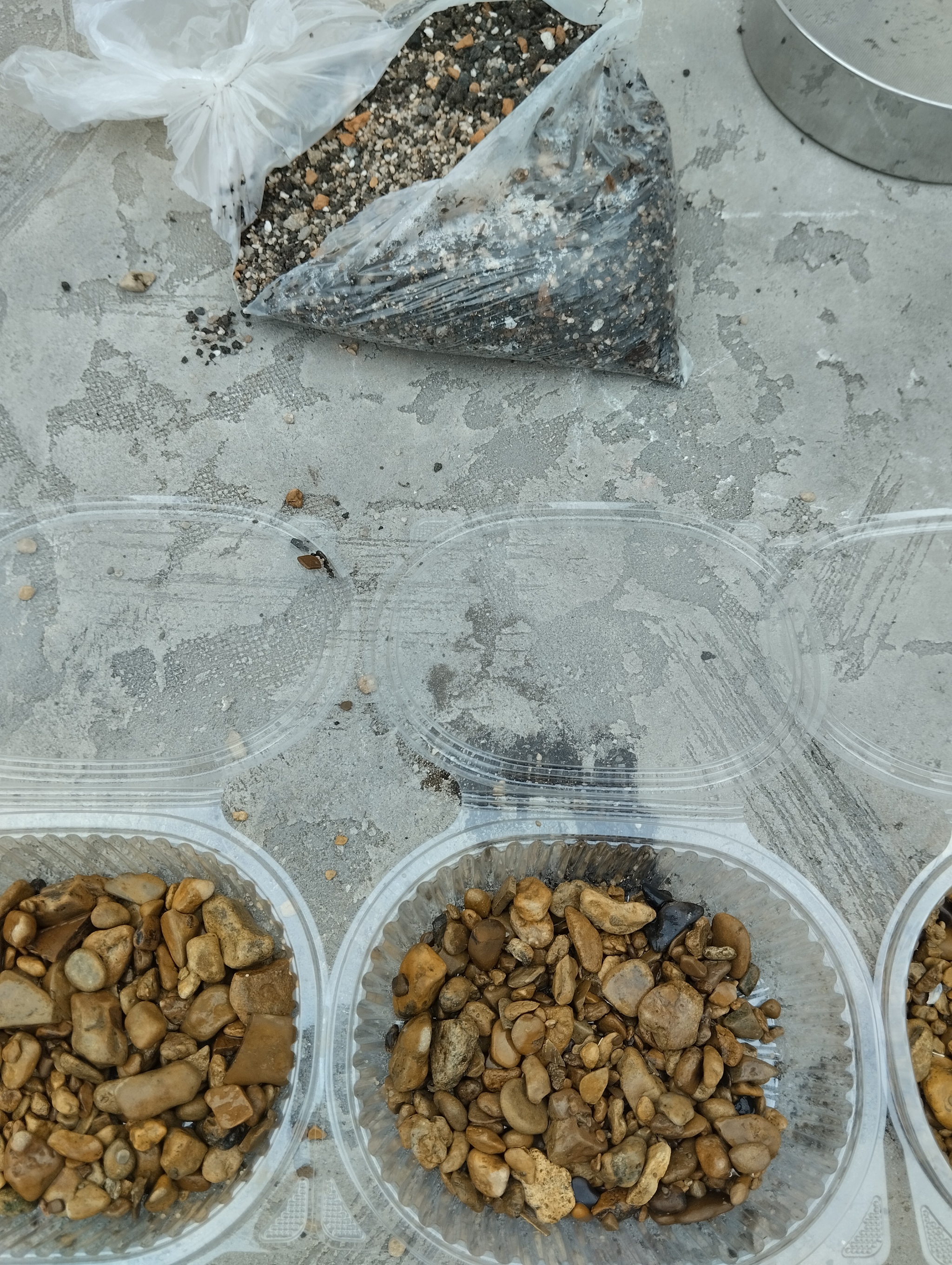 И так, начнем. В качестве ёмкости я взял самые простые пластиковые одноразовые контейнеры. Снизу сделал много дренажных отверстий, в таком тонком пластике удобнее всего отверстия прожигать нагретым гвоздем. Далее засыпал обычный гравий в качестве дренажа.