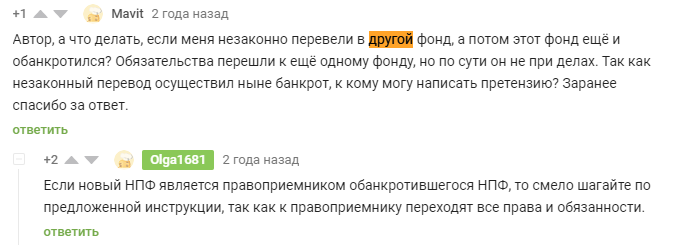 Внимание: многие НПФ объединяются. Например у вас было НПФ "А" и оно объединилось с НПФ "Б", то ваши средства в НПФ "Б" переведены законы.