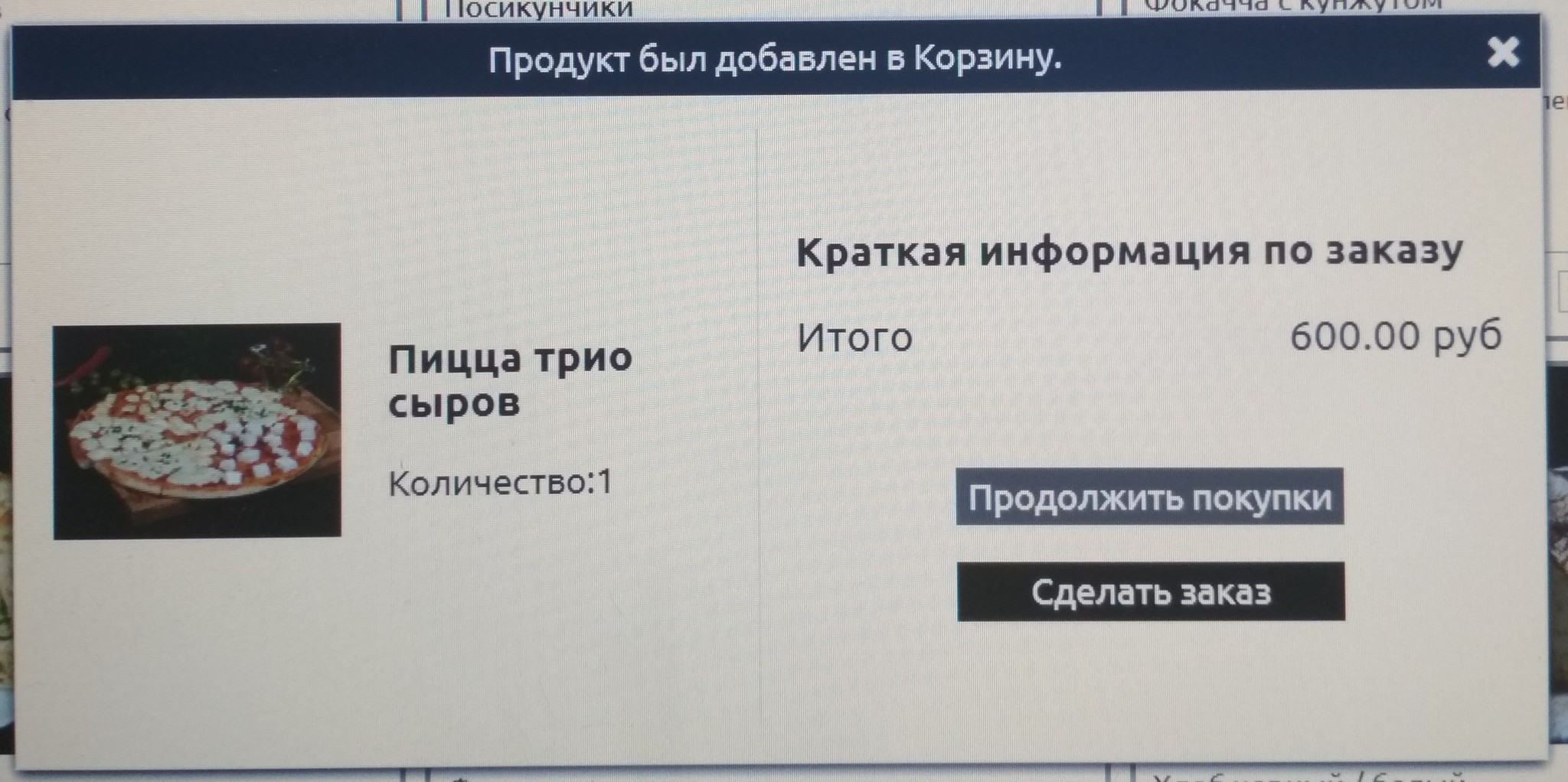 Захожу в меню, выбираю пиццу:
