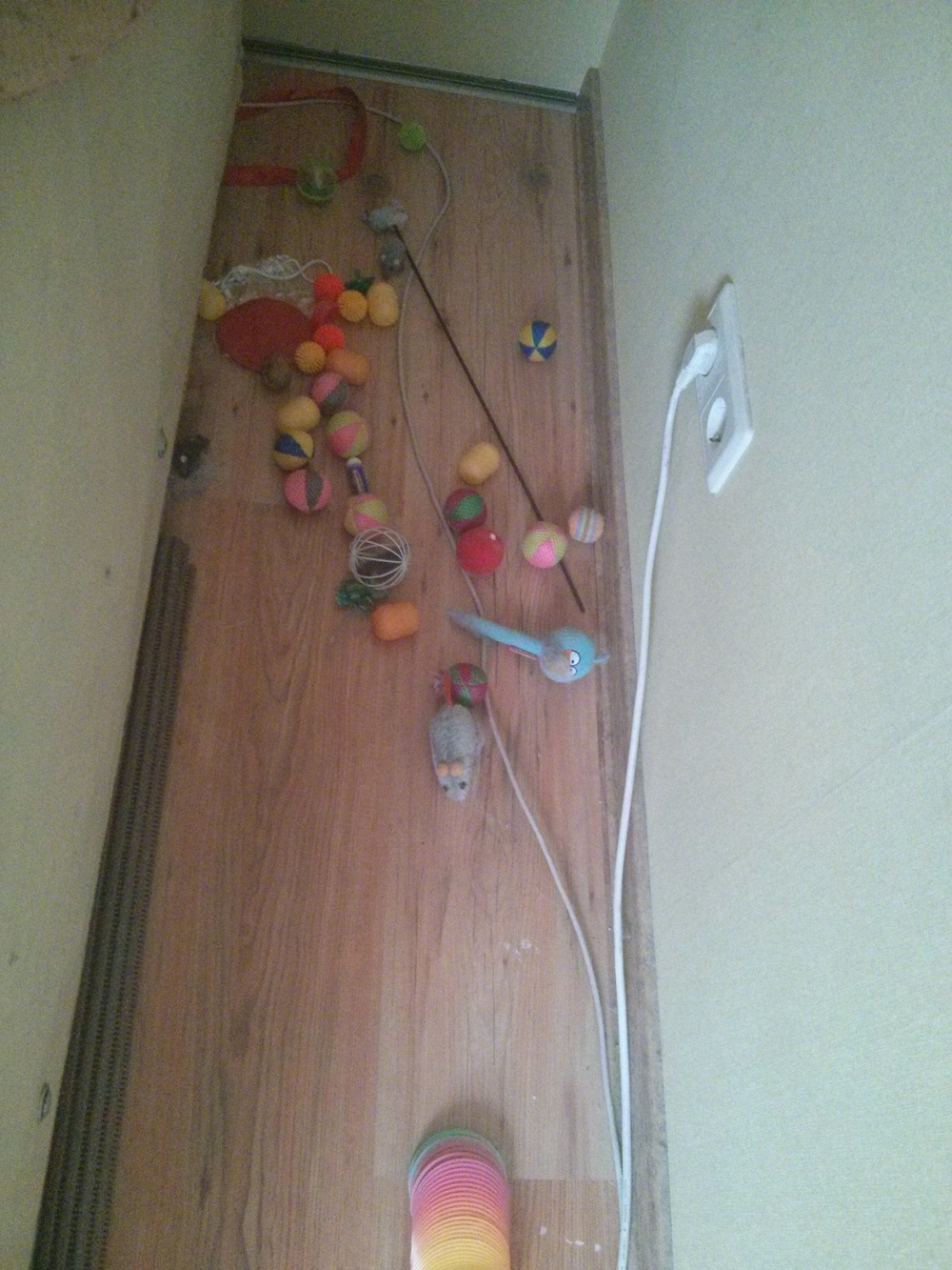 Оранжевую игрушку вообще на холодильнике нашел, видимо еще много тайников откроется после генеральной уборки.