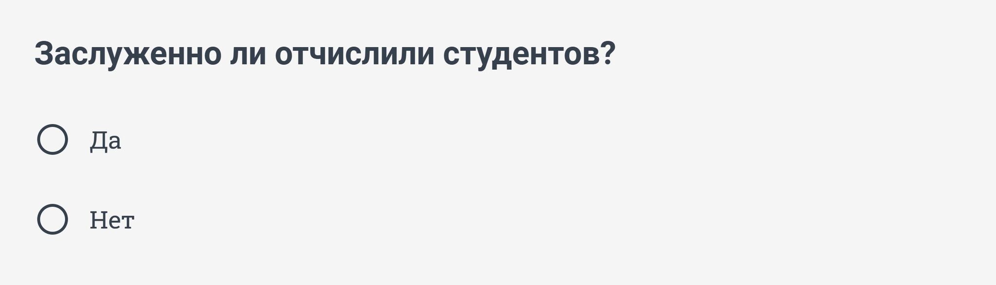 Студентов вызвали в деканат и попросили расписаться в приказе об отчислении. Позвонить в этот момент родителям им не разрешили, рассказала E1.RU мама одного из молодых людей.
