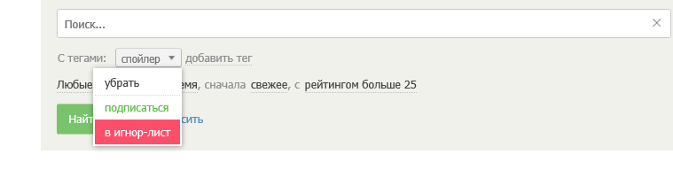 Извините за оффтоп, но как добавить тег в игнор? Погуглил, сделал все по инструкции, но посты с играми престолов все равно в моей ленте...