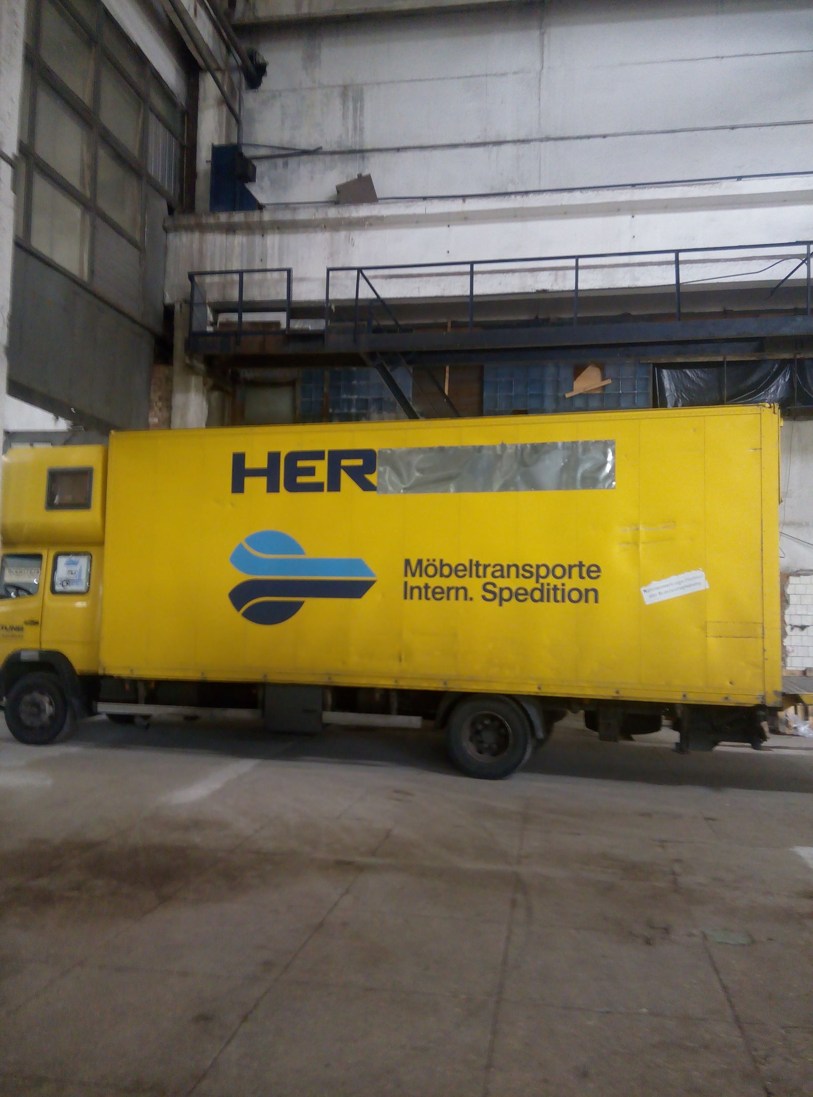 На работу приехал грузовик. Парни что ездят на нем однажды повредили будку и решили аккуратно заделать листом метала. Сделали аккуратно чтоб в глаза не бросалось, в дальнейшем хотят подкрасить (может уже подкрасили). Сами того не подозревая, внесли иной смысл в старый логотип.