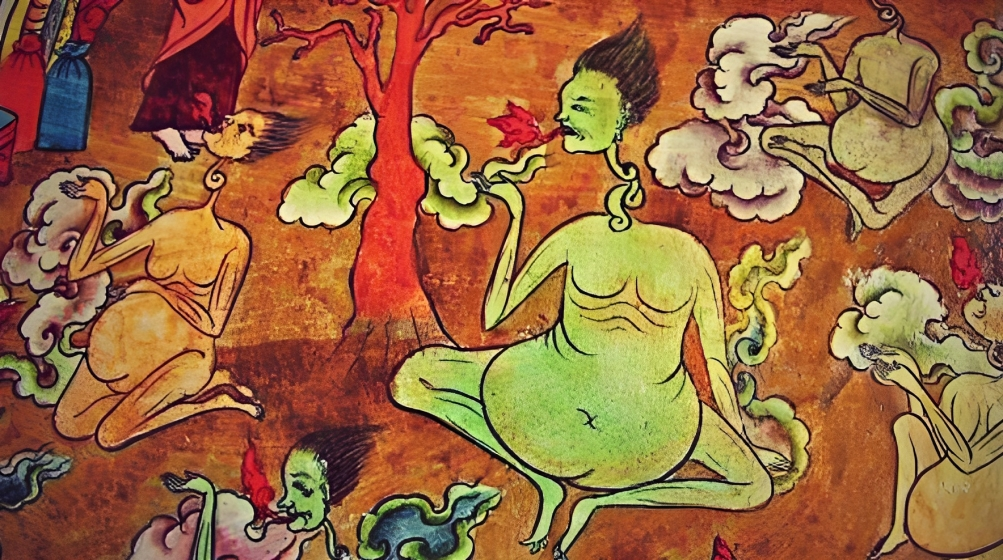 Здесь бывают, конечно и различия. Например, ракшасы, как правило, предпочитают есть плоть живых людей, а пишачи могут лакомиться и покойниками. Преты тоже ассоциируются с покойниками, и часто они не особо выразительные и смешиваются с бхутами.