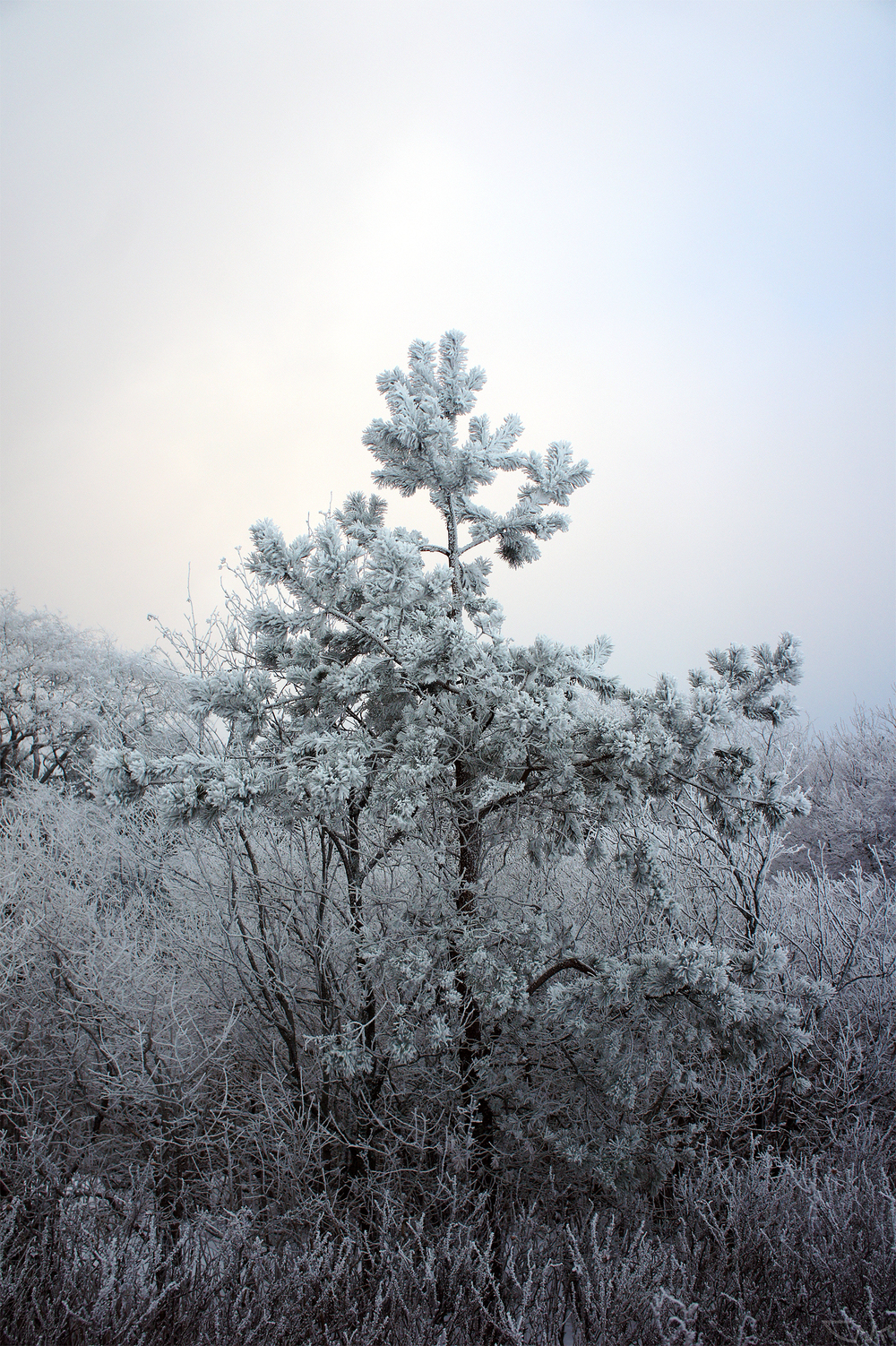 Конкретно на этой фотке (если приблизить) видно, что там на ветках, именно слой снега.