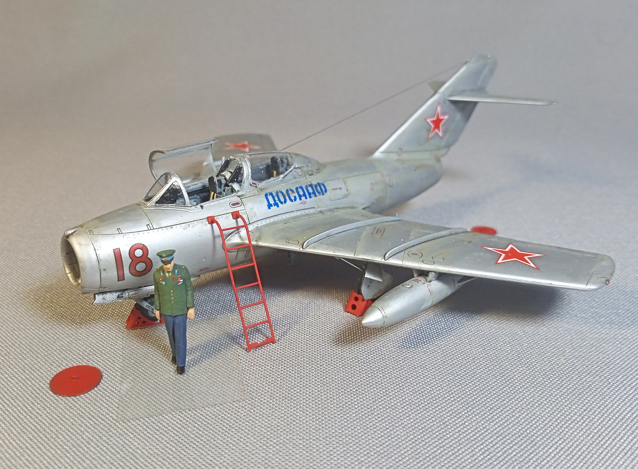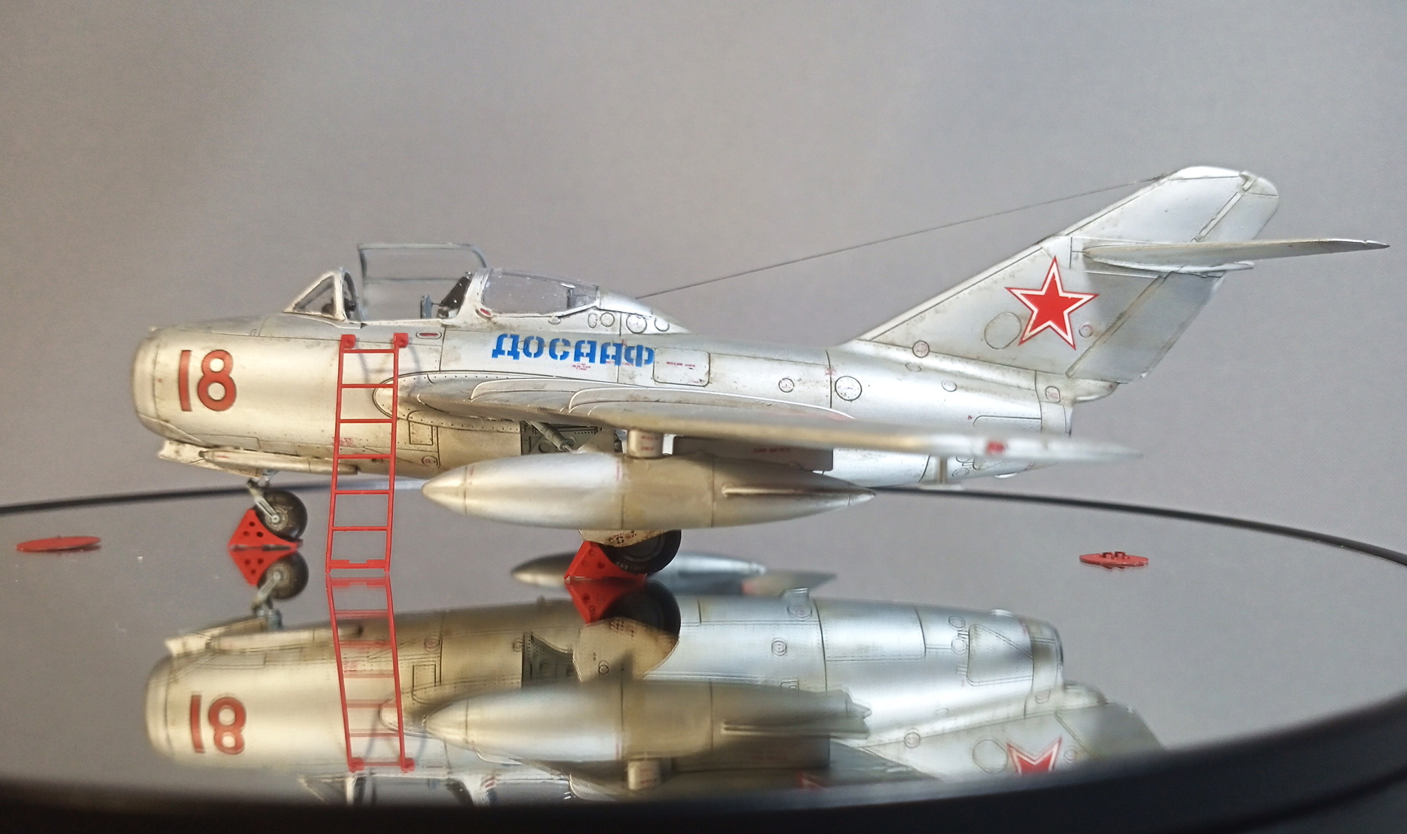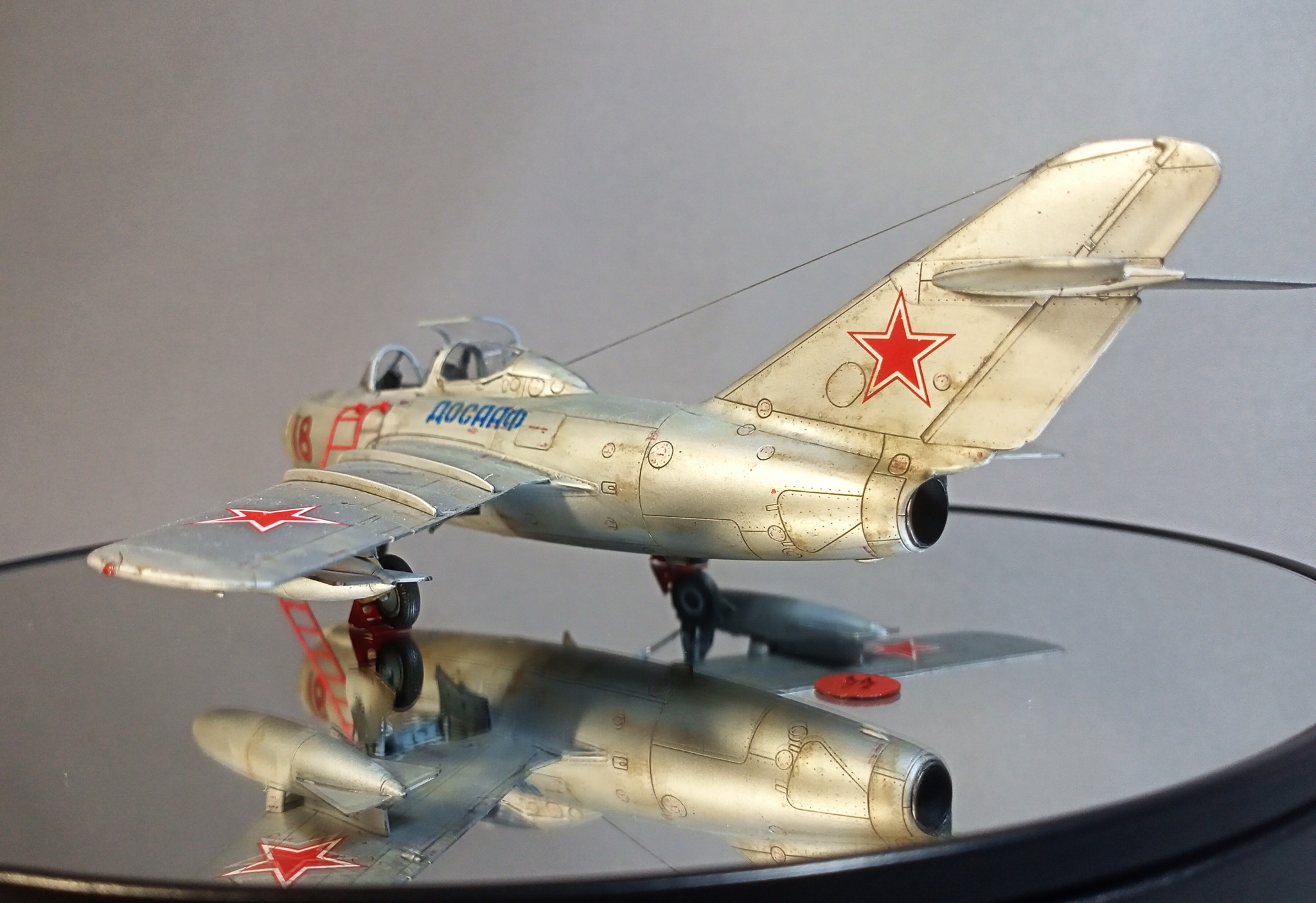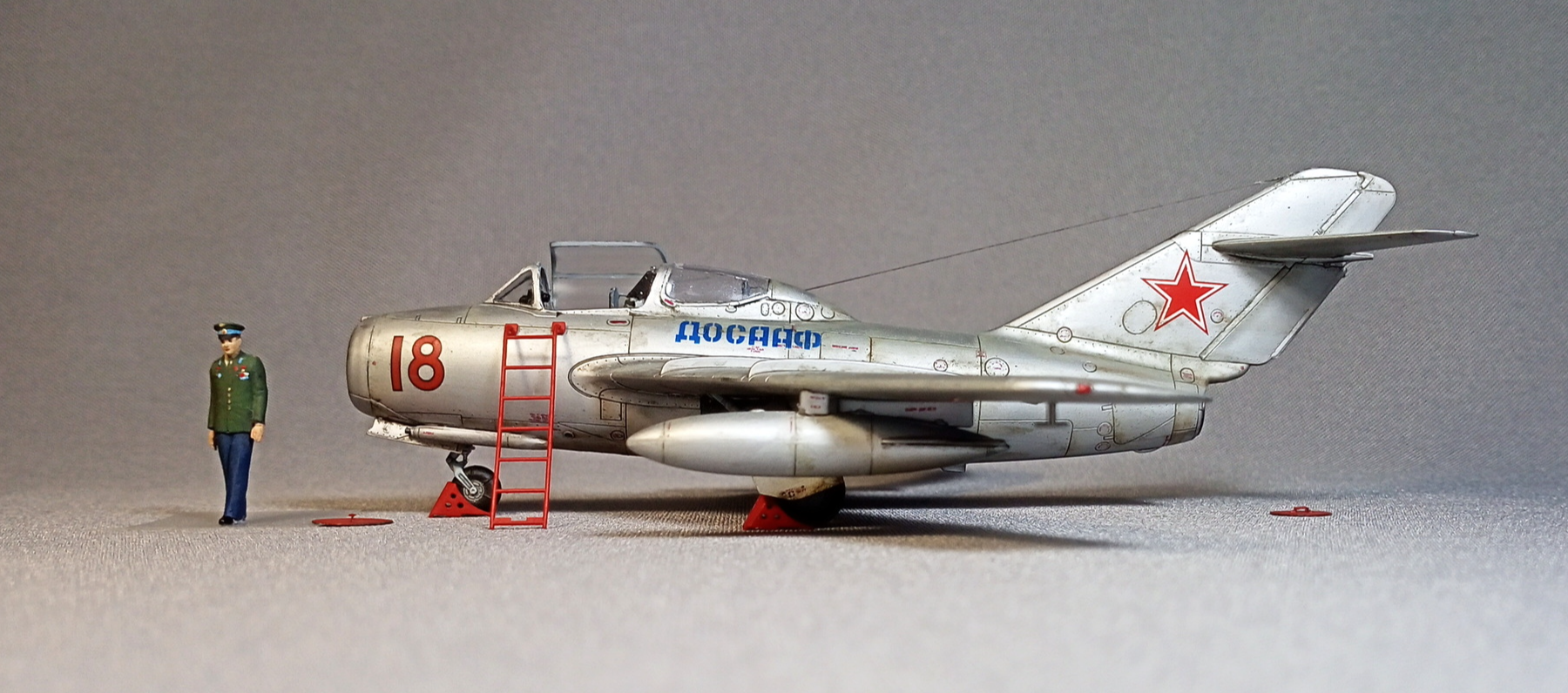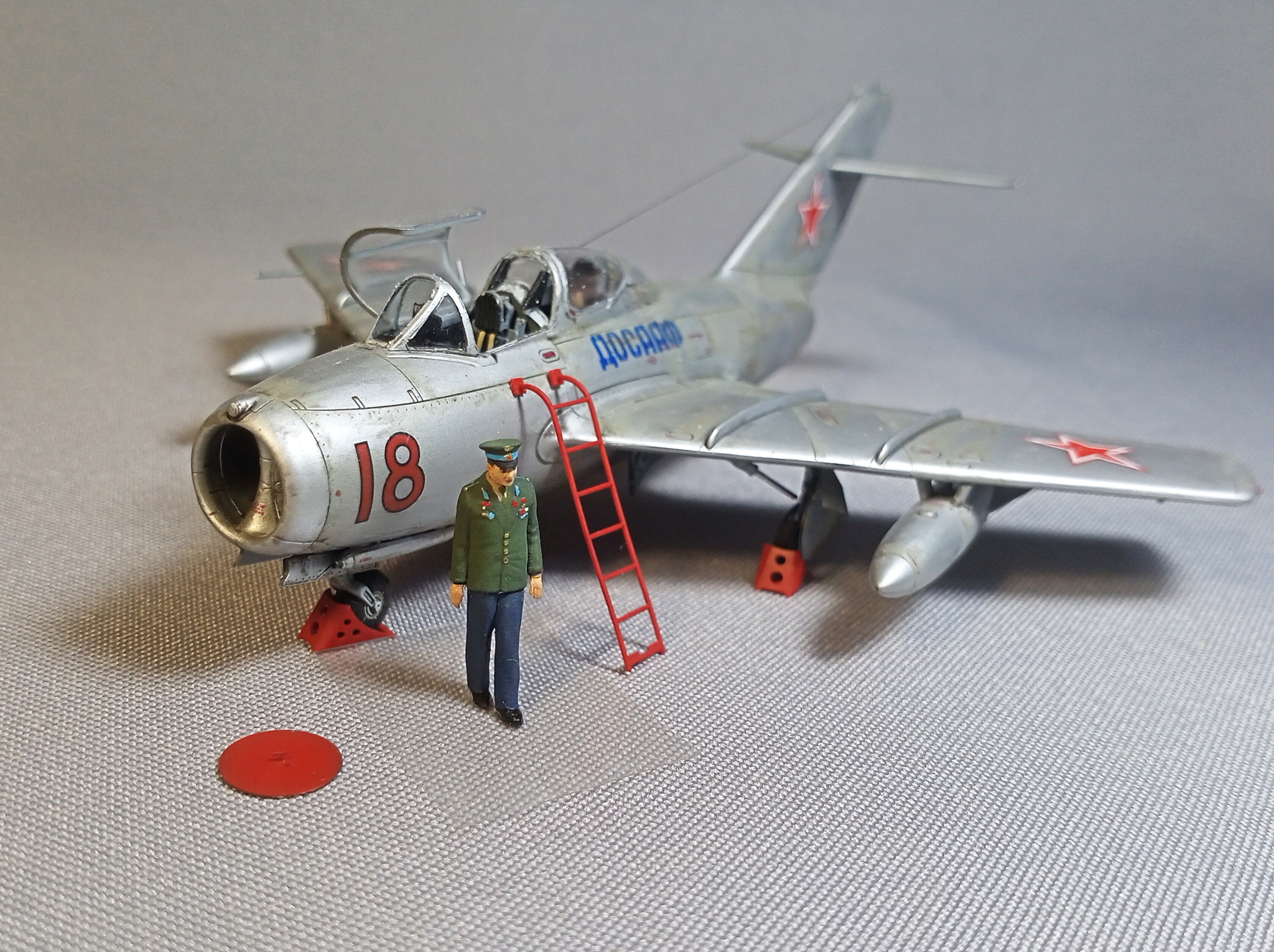 Представлена модель МиГ-15 УТИ №612739 с бортовым номером «18 красный» ДОСААФ во время подготовки к полёту, 27 марта 1968 года, аэродром Чкалоский, Щёлково, РСФСР. Модель фирмы Eduard с дополнениями, фигура Юрия Гагарина - North Star Models, масштаб 1/72.