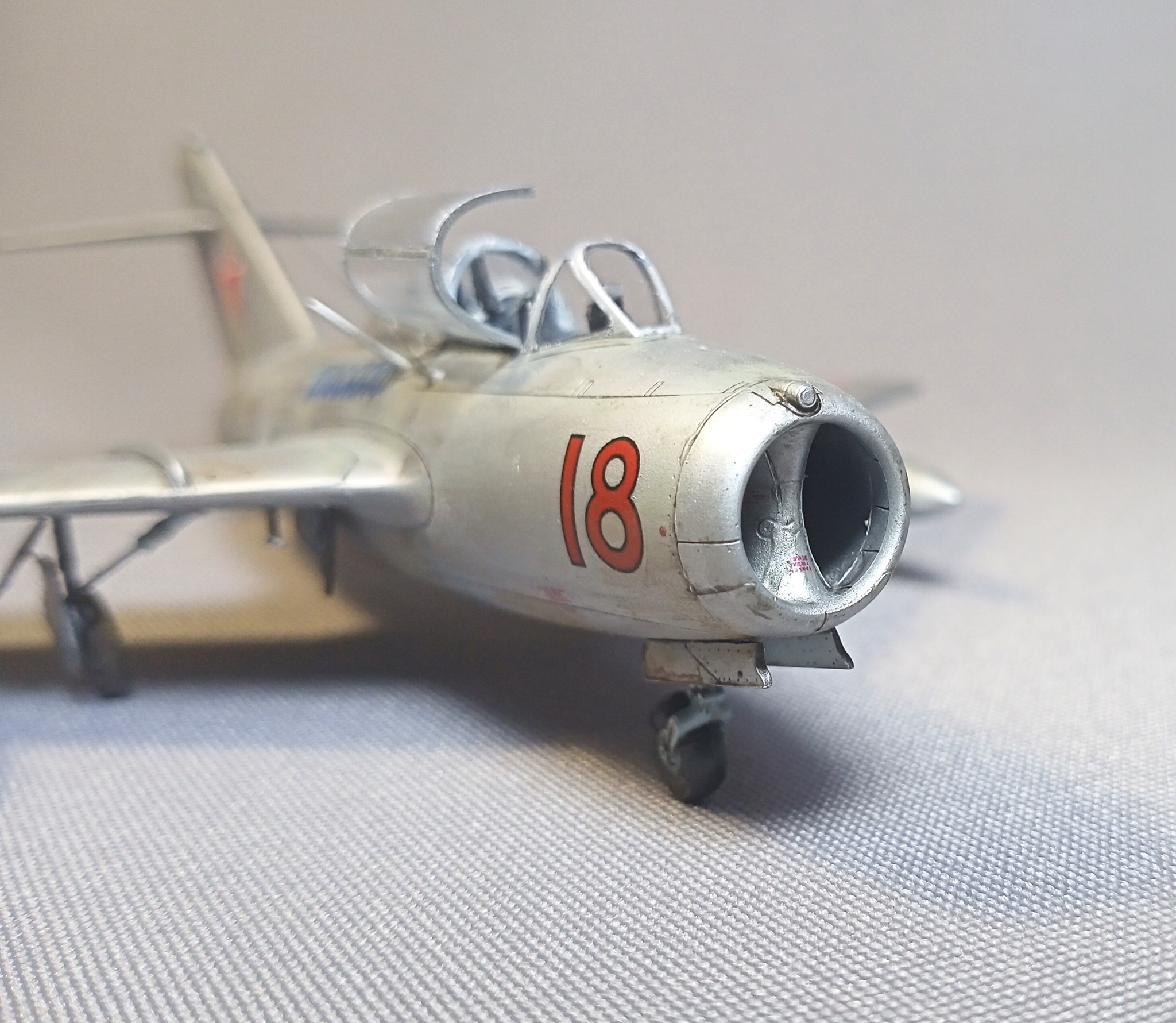 Советская авиация всегда страдала от отсутствия двигателей. На заре её становления летали на французских Гном-Ронах и американских Райтах, во время Второй Мировой - на многократно модернизированных Испано-Сьюизах… С окончанием Второй Мировой подошла к концу эра военной поршневой авиации, будущее было за самолётами с ТРД - турбореактивными двигателями. Естественно, что в Союзе таких двигателей не было. А были они в Германии (которая в вопросах реактивной авиации была впереди планеты всей) и в Великобритании. Ну и немного в США. При создании первых реактивных истребителей советские конструкторы прибегли к использованию немецких технологий. Первые советские машины оснащались копиями трофейных германских двигателей BMW-003 и Jumo-004, кроме того, было создано несколько типов опытных и малосерийных истребителей с комбинированной силовой установкой, а также несколько истребителей-ракетопланов. В ОКБ Микояна в этот период были созданы МиГ-13, МиГ-9 и ракетоплан И-270. Эти машины были далеки от совершенства. Новый этап в развитии советского авиастроения наступил с закупкой двигателей уже у Союзников. В конце 1946 года в Англию, бывшую тогда лидером мирового реактивного двигателестроения, была направлена делегация, в состав которой входили главные конструкторы: самолетчик А.И.Микоян, двигателист В.Я.Климов и ведущий специалист по авиационному материаловедению С.Т.Кишкин. Им удалось закупить наиболее совершенные турбореактивные двигатели фирмы Rolls-Royse: Derwent V с тягой 1590 кгс, Nene I с тягой 2040 кгс и Nene II с тягой 2270 кгс. Уже в феврале 1947 двигатели стали поступать в СССР. В дальнейшем новинки английского двигателестроения были успешно скопированы и запущены в серийное производство без разрешения британцев. «Дервент-V» выпускался советской промышленностью под названием РД-500, а «Нин-I» и «Нин-II», соответственно, превратились в РД-45 и РД-45Ф. К подготовке серийного производства на заводах приступили с мая 1947 года.