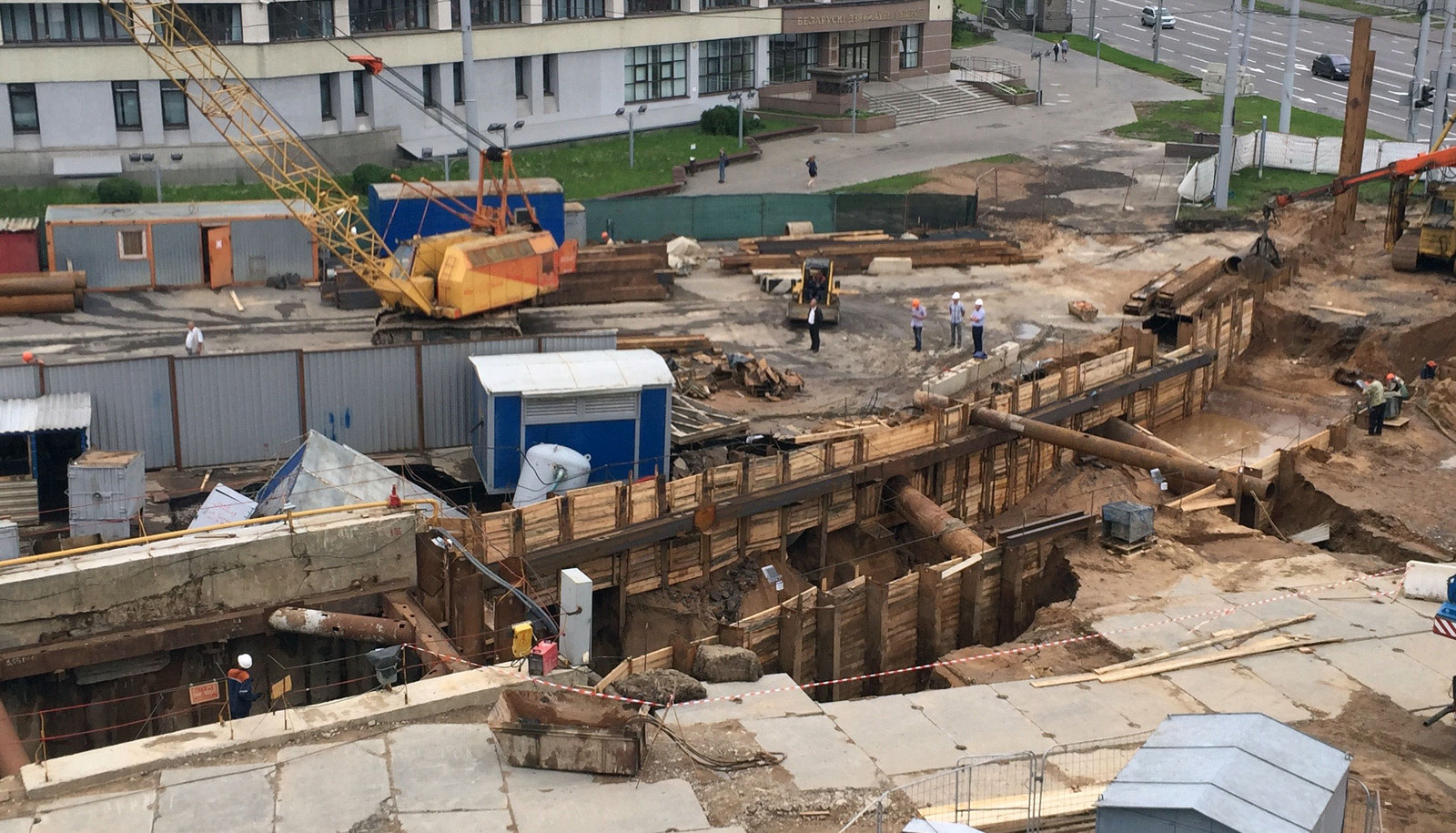13 июля в Минске прошел сильный ливень, который создал много проблем строителям метро - затопил котлован, размыл грунт. Из-за вымывания грунта упал котел: