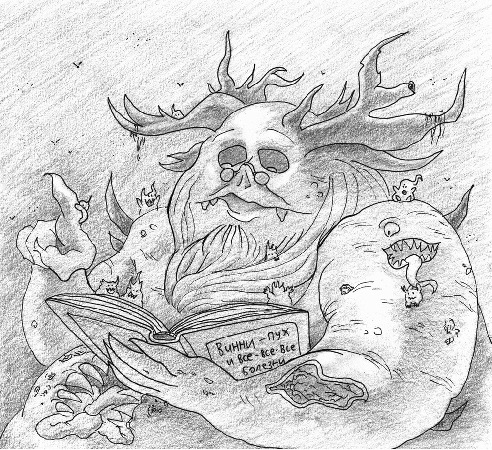 Ни для кого не секрет, что Лили - зомби-плотоядная монстрячка, я уже показывал вам, как она выглядит, когда мне ее рисовала знакомая художница.  Развлечения ради, она часто охотится на мыслеобразы, которые принимают форму людей, попадая в ее вондер.