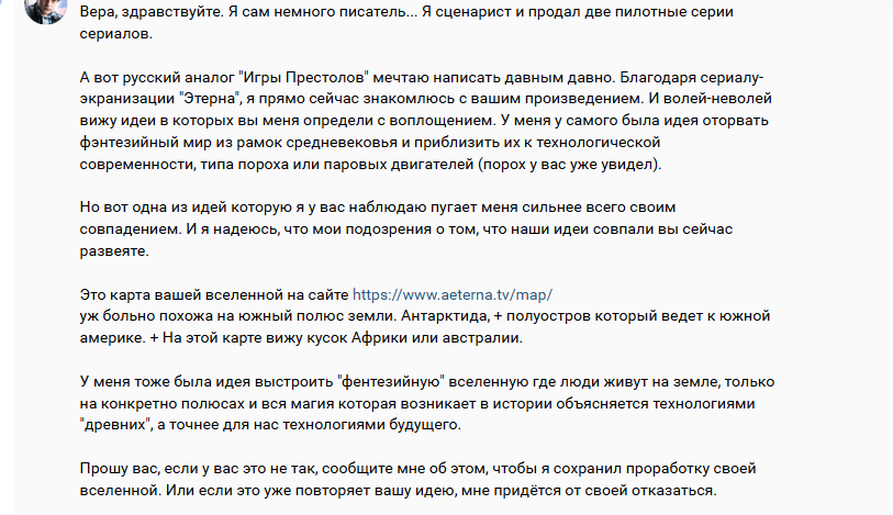 Почему я решил обратить внимание на сий проект? Сам давно лелею мечту написать что-то фэнтезийное эпичное и самое главное с российской ЦА. Что-то что по уровню драматических перипетий похожее на "Игру престолов" с разными центрами сил, разными мотивациями, огромной кучей переменных, которые в конечном счёте выстраиваются в красивое уравнение.