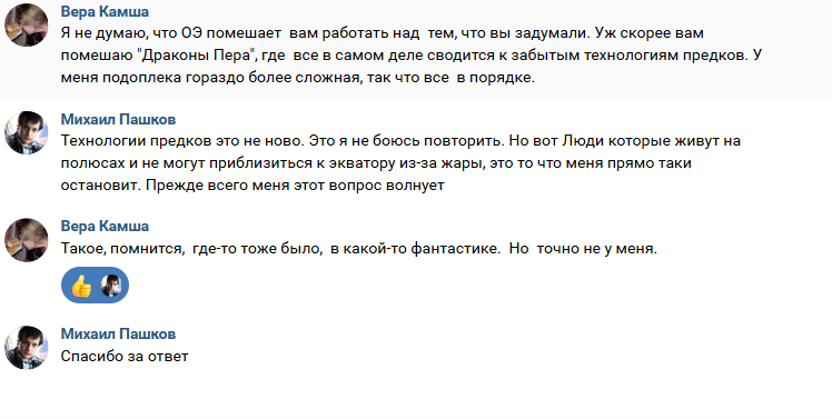 Здесь отдельно ещё раз поблагодарю Веру за ответ, и на всякий случай прошу прощения за публикацию нашего неконфликтного диалога. Со всем уважением к писательнице, которая добилась высот до которых мне ещё далеко.