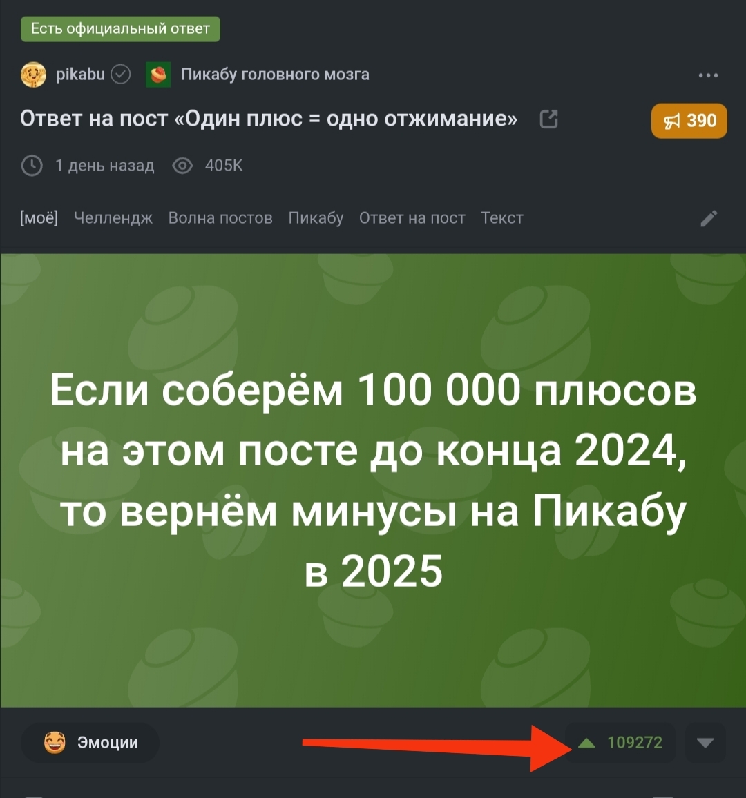 Есть официальный ответ Flegmatical FABRICATI DIEM,PVNC! Посмотрим,что теперь будут делать админы 1 год назад @pikabu, ждем первого января,хехе Картинка с текстом Скриншот Пикабу Сила Пикабу 4 Ещё 0