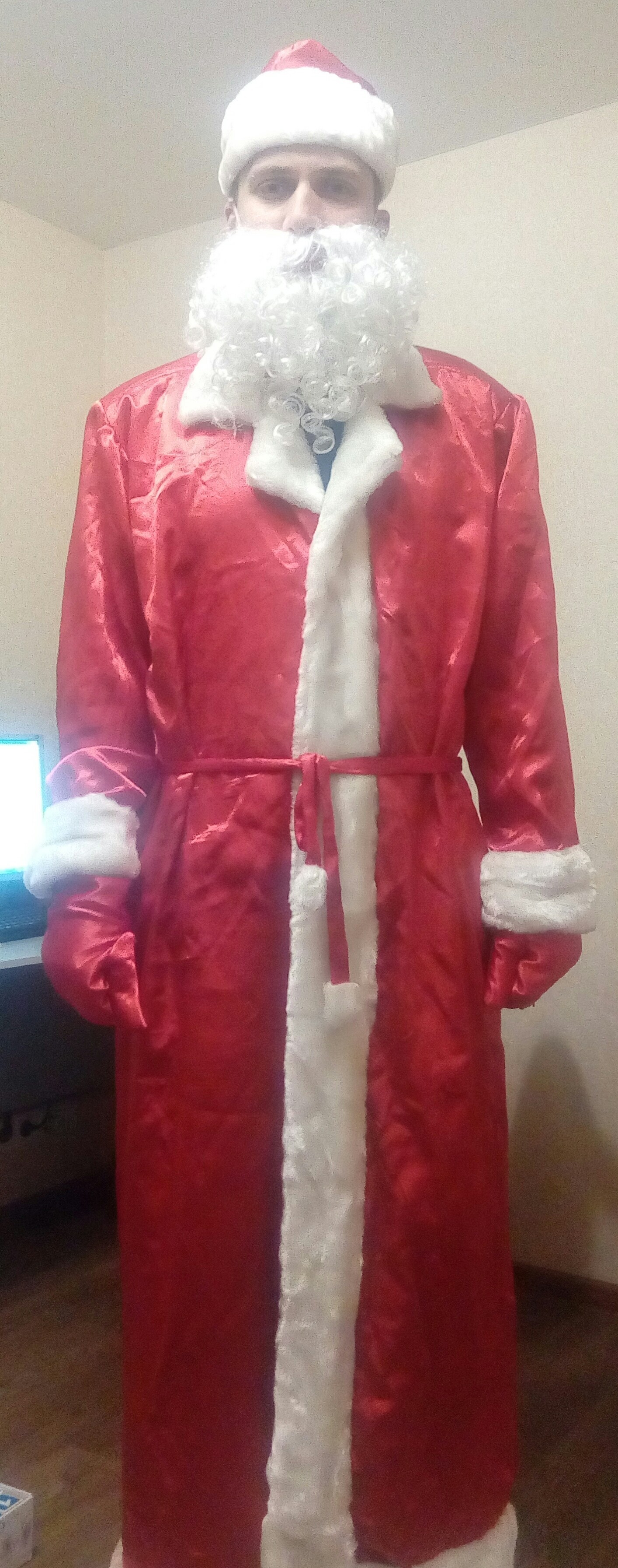 Старшей дочке уже 11 лет и дед мороз уже давно к ней не приходит. А младшей всего 2,5 и настал момент доставить свой старый наряд деда мороза. Обнаружили, что нет посоха. Сделал со старшей из того что дома было =)