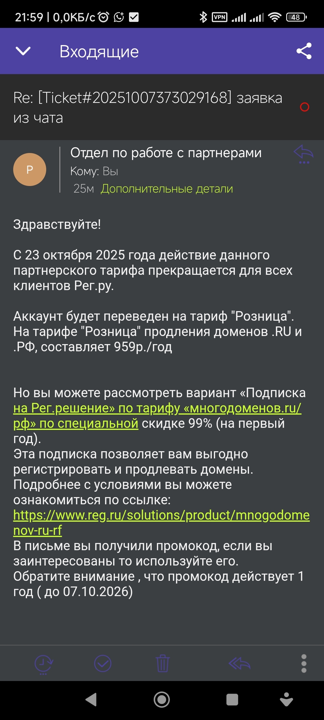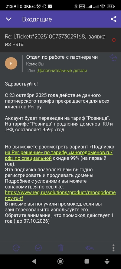 Ну собственно, что я и ожидал. Завтра заявление отсканиру,ю на работе, и утащу домен в beget из этой конторы пидарасов.