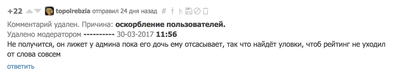-за оскорбления удаляется оскорбительное сообщение. ни слова про бан оскорбившего