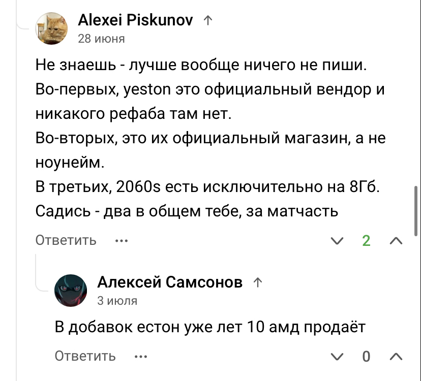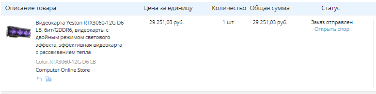 Далее началась фаза томительного ожидания и мониторинга отзывов на тему «продавец кинул, карта б/у после майнинга» и т.д.. причём продавец продавал асусы а отзывы на колорфул. Потом стало ясно, что продавец часто меняет ассортимент и потому такая путаница. Почти все в отзывах писали, что карты новые, с пломбами, наклеечками.