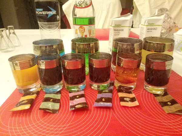 Так же взял соки да тархун для придания вкуса зельям. Развел красители а 50мл водки. Друг пьющий, так что было сделано так чтоб можно было "бахнуть" эти самые зелья.