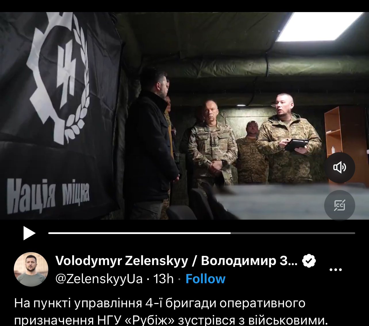 Модератор, как тебе источник аккаунт Х самого ПРЕЗИДЕНТА? Вот ссылка, тайм код не знаю, но скриншоту можно увидеть куда ползунок передвинуть: