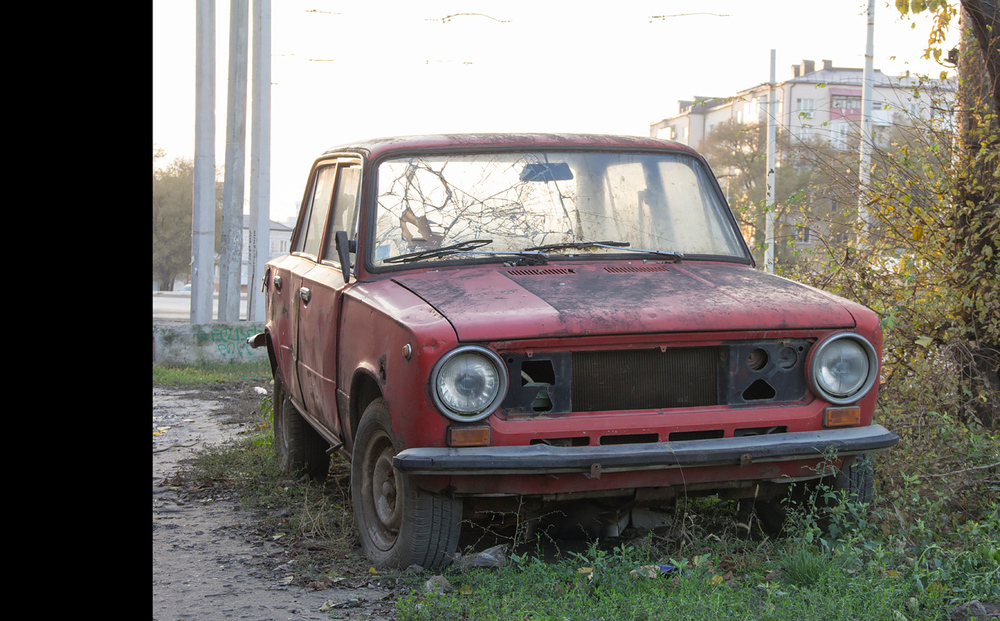 целые стекла и фары уж очень не вяжутся с постапокалипсисом (да, лобовое разбито, то в па вряд ли уцелело бы хоть одно, а тут вообще все кроме одного)