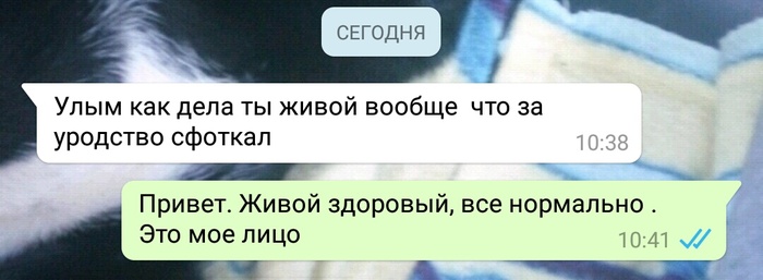 9 vlastelin11 Поставил новое фото в мессенджере... 8 лет назад Спасибо, ма😁 [моё] WhatsApp Мама Рожа Я не очень красив