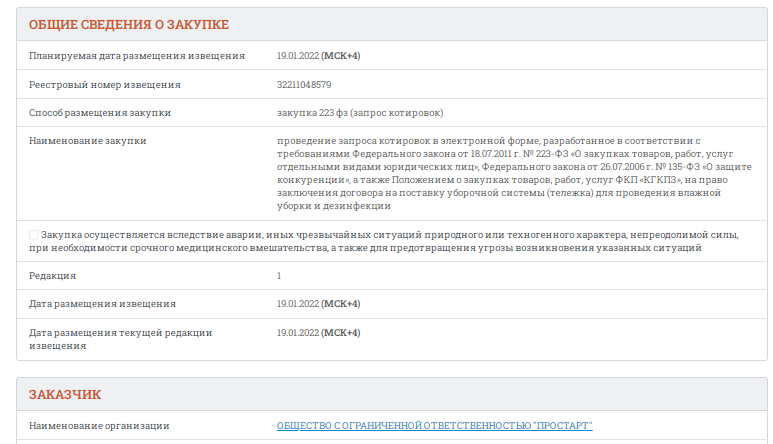 Мы видим много закупок самой разной направленности, хорошо, откроем первую попавшуюся.
